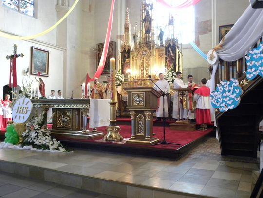 Pięćdziesięcioro dziewięciolatków z parafii p.w. św. Jana Chrzciciela w czasie niedzielnej mszy przyjęło sakrament Eucharystyii. To wielkie święto i dla rodzin ogromne duchowe przeżycie. Dzieci w jednakowych białych albach, pobłogosławione przez rodziców weszły do świątyni prowadzone przez proboszcza ks. Krzysztofa Wojtynię.