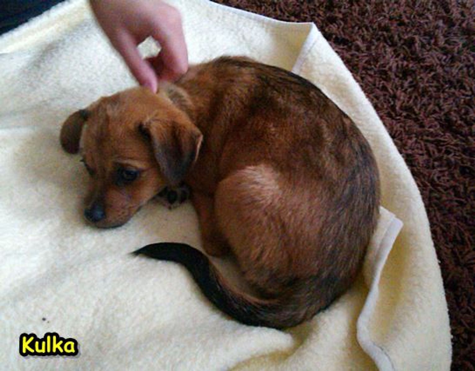 Tym razem, ktoś postanowił pozbyć się szczeniaka pozostawiając go na pewną śmierć w śmietniku przy Placu Narutowicza. Kulka to suczka, która dzięki pomocy dobrych ludzi została uratowana i teraz czeka na swoje lepsze jutro, na nowy dom i ciepłe serce przyszłych właścicieli. Może to właśnie Ty zechcesz adoptować tego pięknego psiaka.