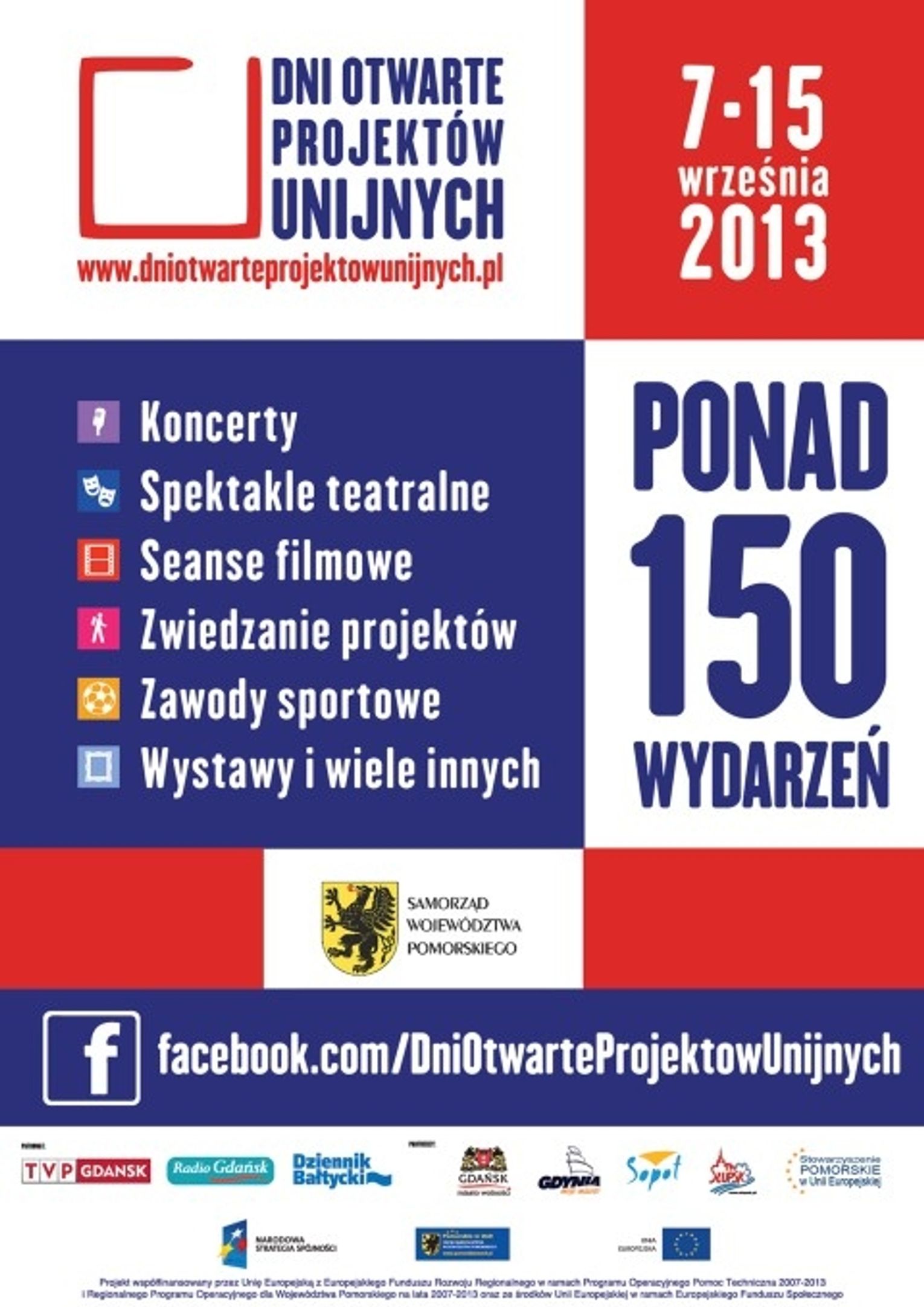 Dni Otwarte Projektów Unijnych to największy w województwie cykl imprez promujących projekty finansowane przez Unię Europejską. Podczas wydarzenia odbędzie się ponad 150 imprez, które promować będą około 97 projektów realizowanych na całym Pomorzu. Wśród zaplanowanych atrakcji są m.in. festyny, koncerty, seanse filmowe, zawody sportowe, regaty, zwiedzanie projektów, wystawy, konkursy i zabawy dla dzieci, gry miejskie, spektakle teatralne i wiele, wiele innych.