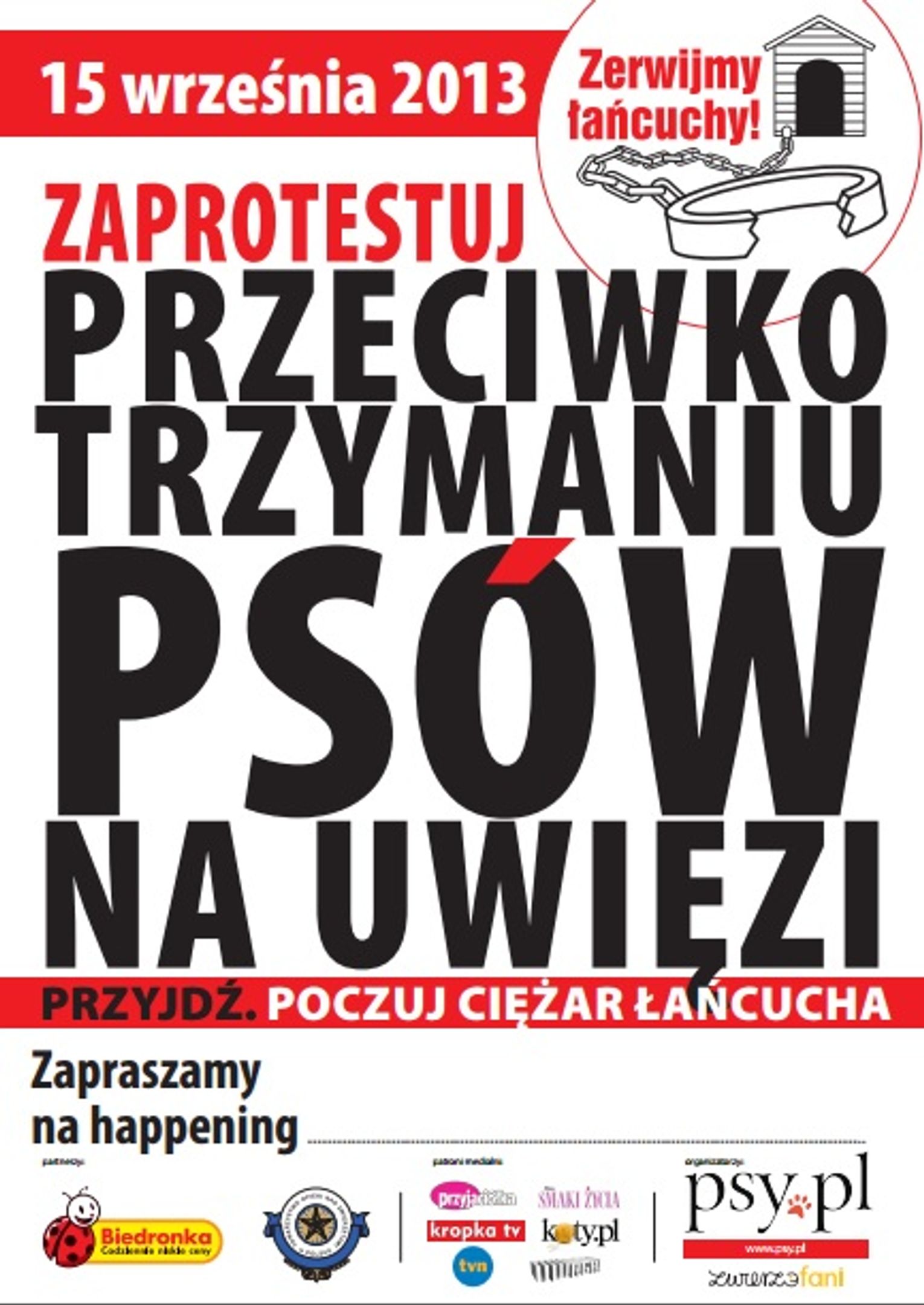 W centrach wielu polskich miast ustawiane są budy, do których każdy, kto tylko zechce, może się na kilka minut przywiązać - by zobaczyć, jak wygląda świat z perspektywy psa łańcuchowego, jak wycieńczające, koszmarnie nudne i bezsensowne jest życie na 2 metrach kwadratowych. Większość osób biorących udział w akcji jest zaskoczona ciężarem takiego łańcucha - to po prostu trzeba poczuć na własnej szyi.