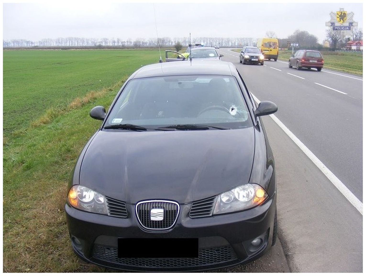 Policjanci ruchu drogowego, którzy pojechali na miejsce w rozmowie ze zgłaszającym ustalili, że z jadącej w kierunku Tczewa ciężarówki wypadł metalowy element. Siła uderzenia była na tyle duża, że część która prawdopodobnie oderwała się od ciężarówki wybiła szybę czołową jadącego za ciężarówka seata, przeleciała przez cały samochód i przebiła tylną szybę.