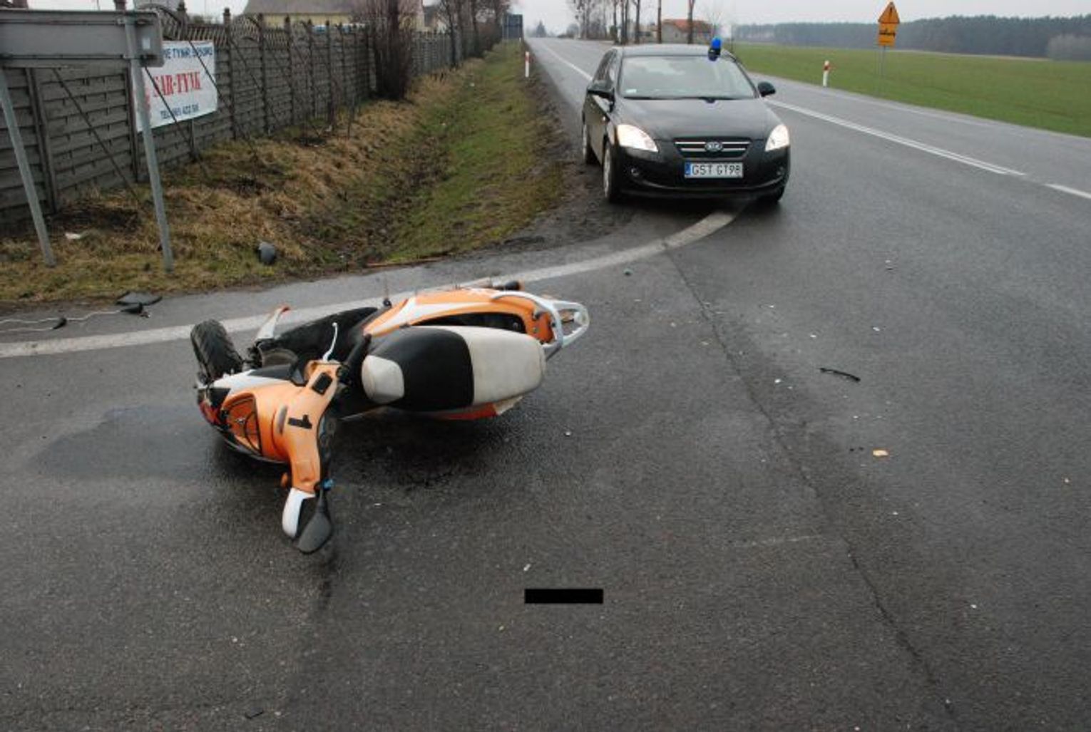 - W Narkowach (gm. Subkowy) na skrzyżowaniu drogi krajowej nr 91 z drogą wojewódzką nr 230 ok. godz. 7.20 zderzyły się honda civic, kierowana przez 26-letniego mieszkańca gm. Subkowy z motorowerem – informuje asp. szt. Dariusz Górski, rzecznik Komendy Powiatowej Policji w Tczewie. - Kierujący motorowerem 62-letni mieszkaniec gm. Gniew pomimo reanimacji zmarł w drodze do tczewskiego szpitala. Ogólnych potłuczeń ciała doznał 19-letni pasażer jednośladu.