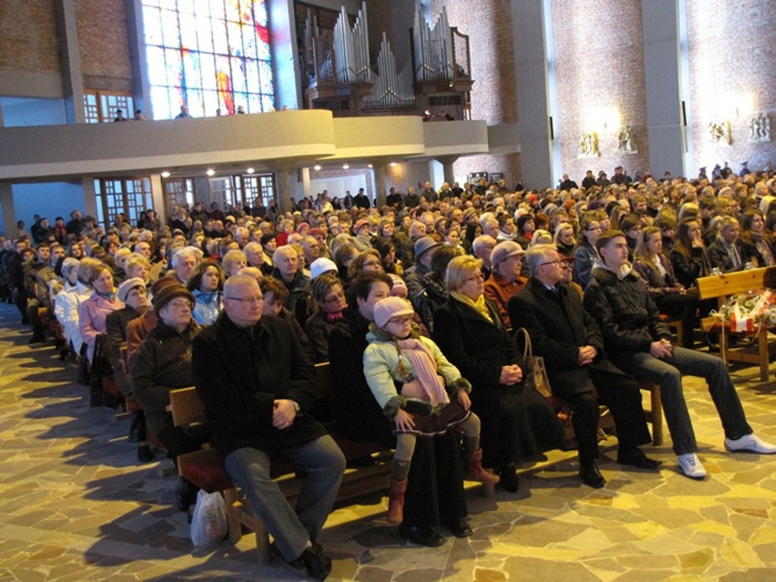 Kościół wypełniony po brzegi. Starzy, młodzi, całe rodziny. Nastrój skupienia i modlitwy. W pierwszych ławkach parlamentarzyści, władze miasta i powiatu. Mszę świętą za dusze tragicznie zmarłych pasażerów feralnego lotu do Smoleńska z 10 kwietnia 2010 r. odprawił dziekan dekanatu tczewskiego ks. prałat Stanisław Cieniewicz. On też wygłosił homilię.