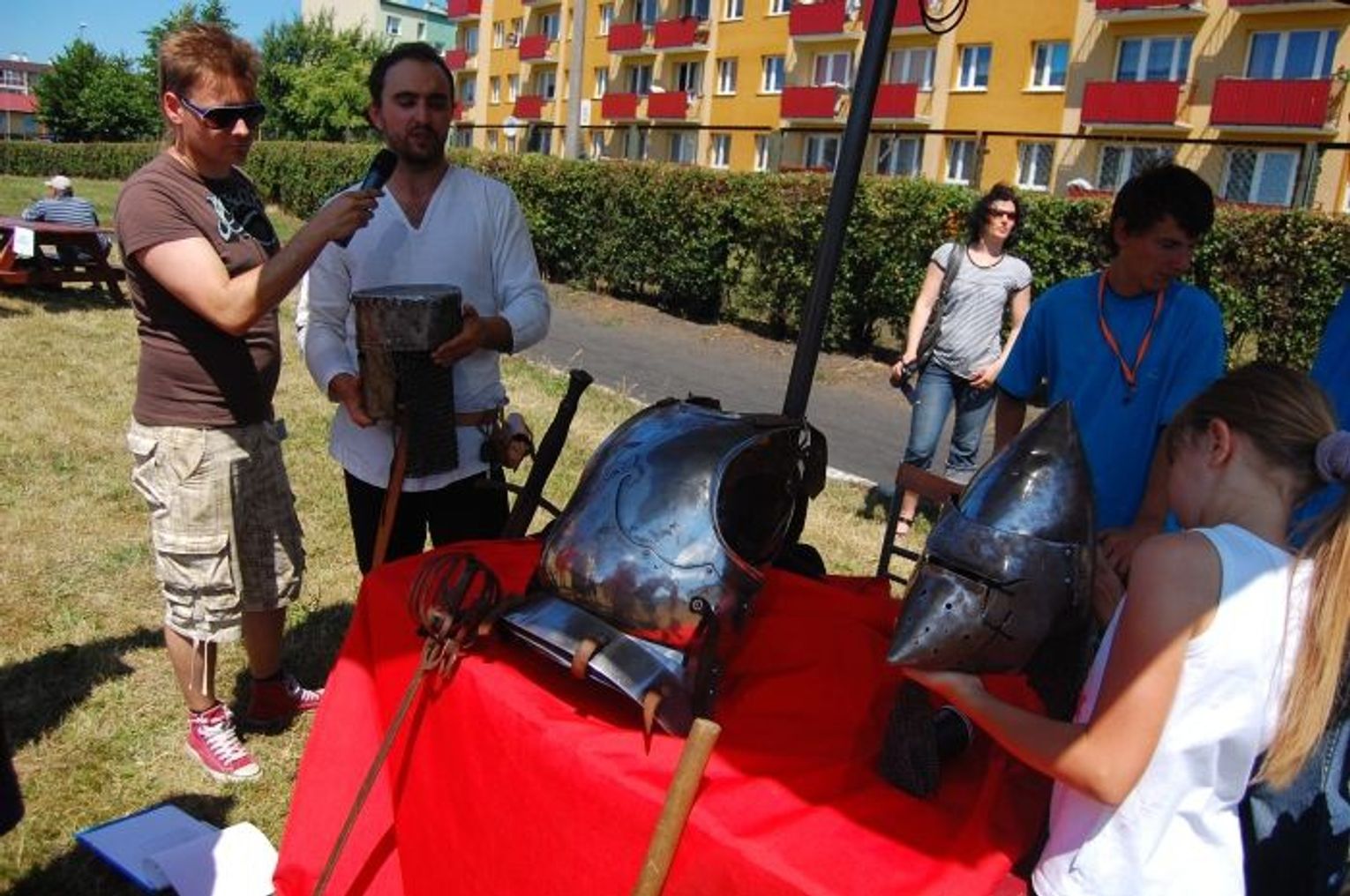 Bractwo rycerskie Kerin zaprezentowało pokaz kunsztu średniowiecznego. Pan Michał w roli specjalisty od średniowiecznej broni zaprezentował, dosłownie, czym groziło uderzenie miecza czy topora. Jeden z niepełnosprawnych przywdział zbroję i hełm, po czym „skosztował” kilka razów na głowę i korpus.