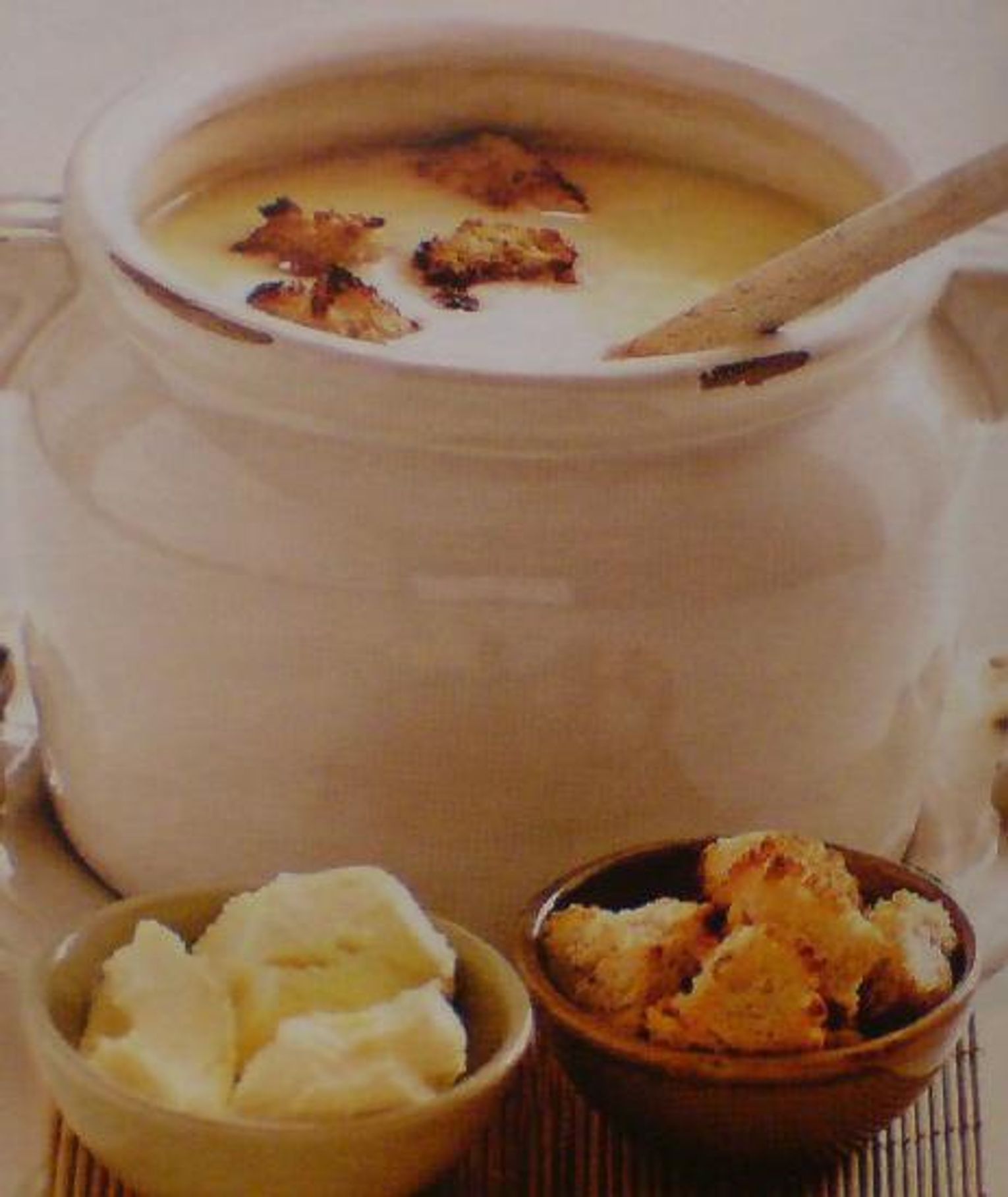 Pół kilograma ziemniaków pokrój w kostkę i ugotuj je do miękkości w litrze wody z dodatkiem liścia laurowego, ziela angielskiego i soli. Na patelni zeszklić jedną cebulę i 10 dag pokrojonego w kosteczkę boczku. Na końcu dodaj roztarty z solą czosnek. Gdy ziemniaki są miękkie, dodaj litr maślanki wymieszany z łyżką żytniej mąki. Całość doprowadź do wrzenia, a po lekkim zgęstnieniu dodaj przesmażony na patelni boczek z cebulą. Smacznego!