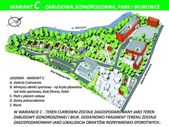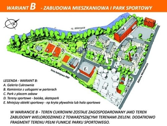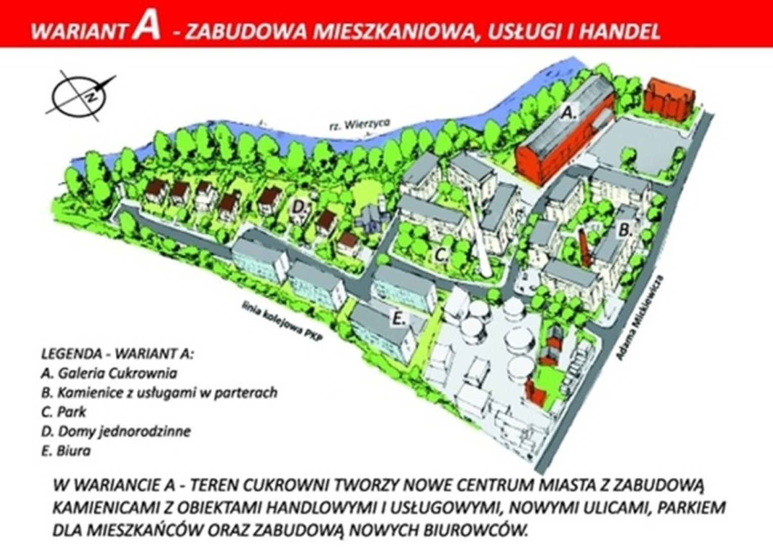 - Wolałbym, aby teren po cukrowni kojarzył się mieszkańcom pozytywnie, z zielenią, rekreacją, miejscem odpoczynku – powiedział jeden z nich. - Ale dla nas najlepszym wariantem jest wariant A – dla nas najatrakcyjniejszy finansowo, za to trochę mniej dostępny dla mieszkańców.