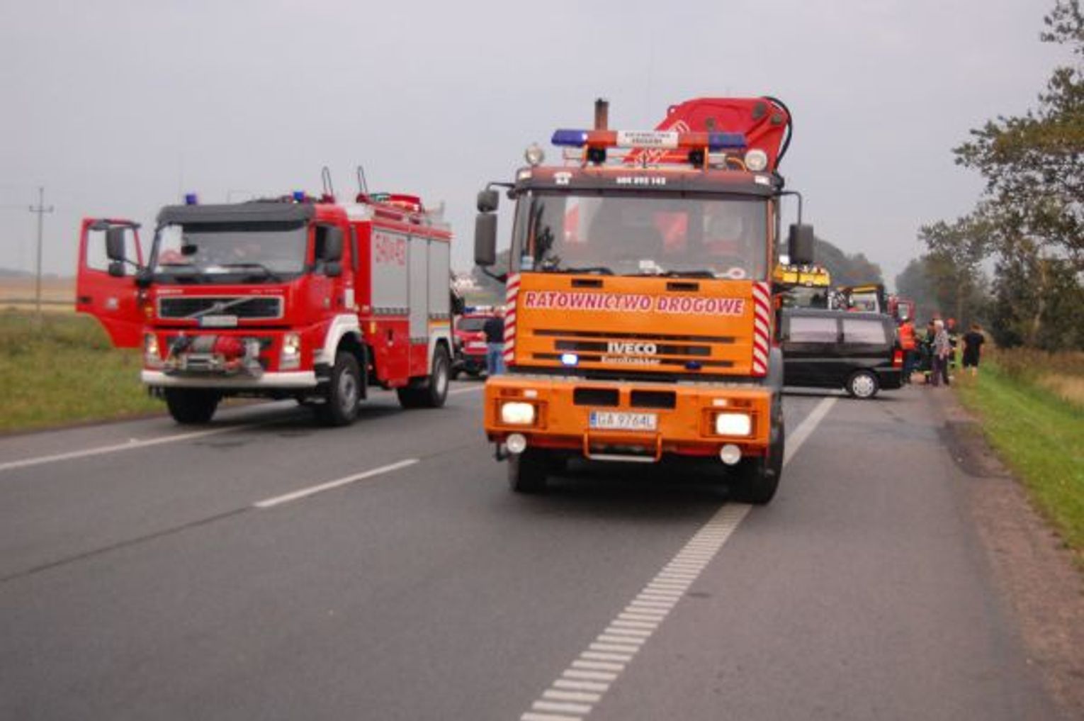 Zderzyły się dwa samochody osobowe: vw golf i volvo oraz cysterna scania. Pomocy udzielają strażacy z JGR Tczew i OSP Miłobądz. Na miejscu wypadku jest prokurator tczewski. Badane są okoliczności tego tragicznego wypadku.