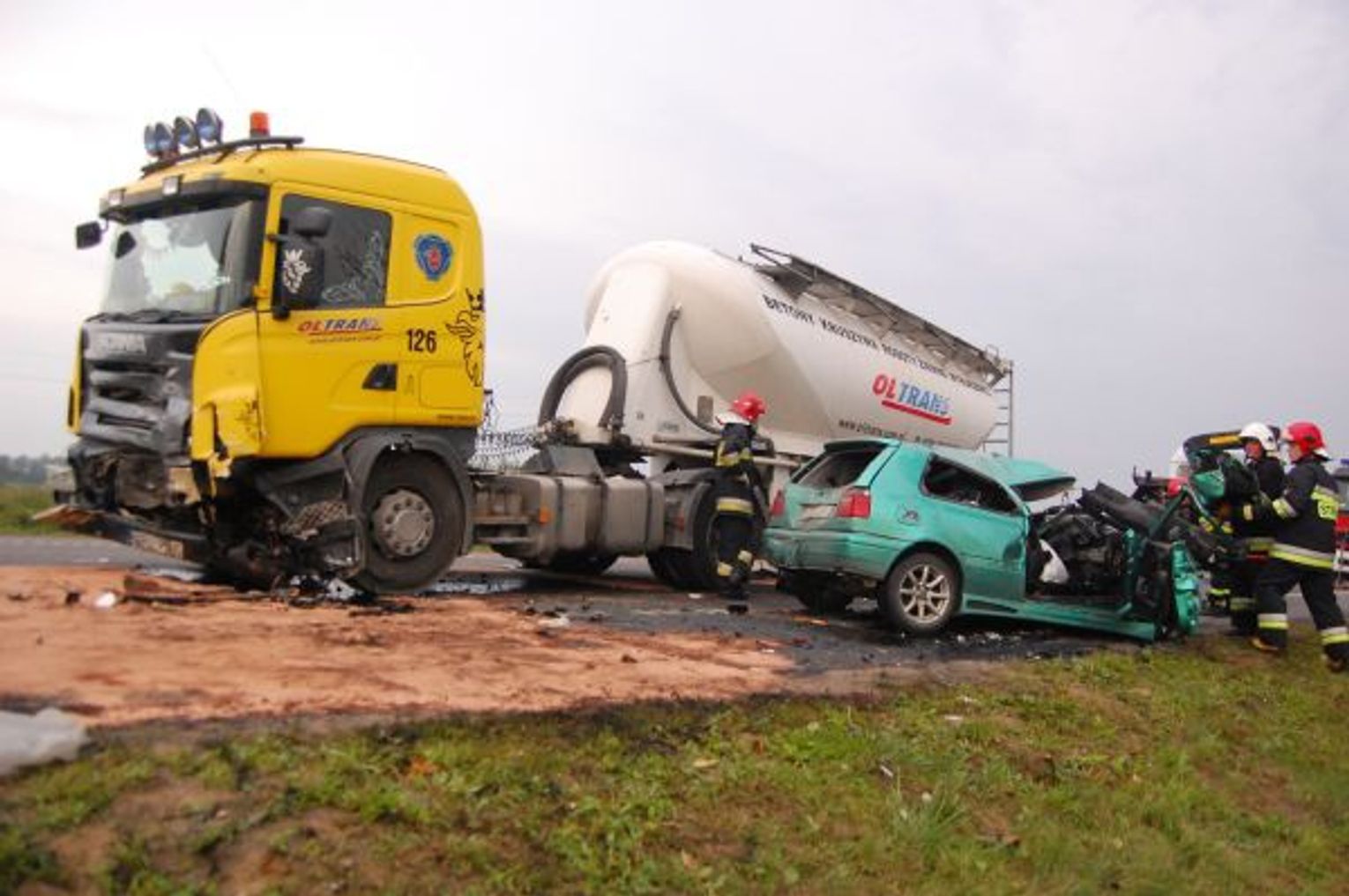 Jak relacjonuje świadek wypadku, golf wyprzedzał tira, zjechał na lewy pas. Okazało się, że nie zdążył wyprzedzić i nadział się na nadjeżdżającą z przeciwnej strony cysternę.