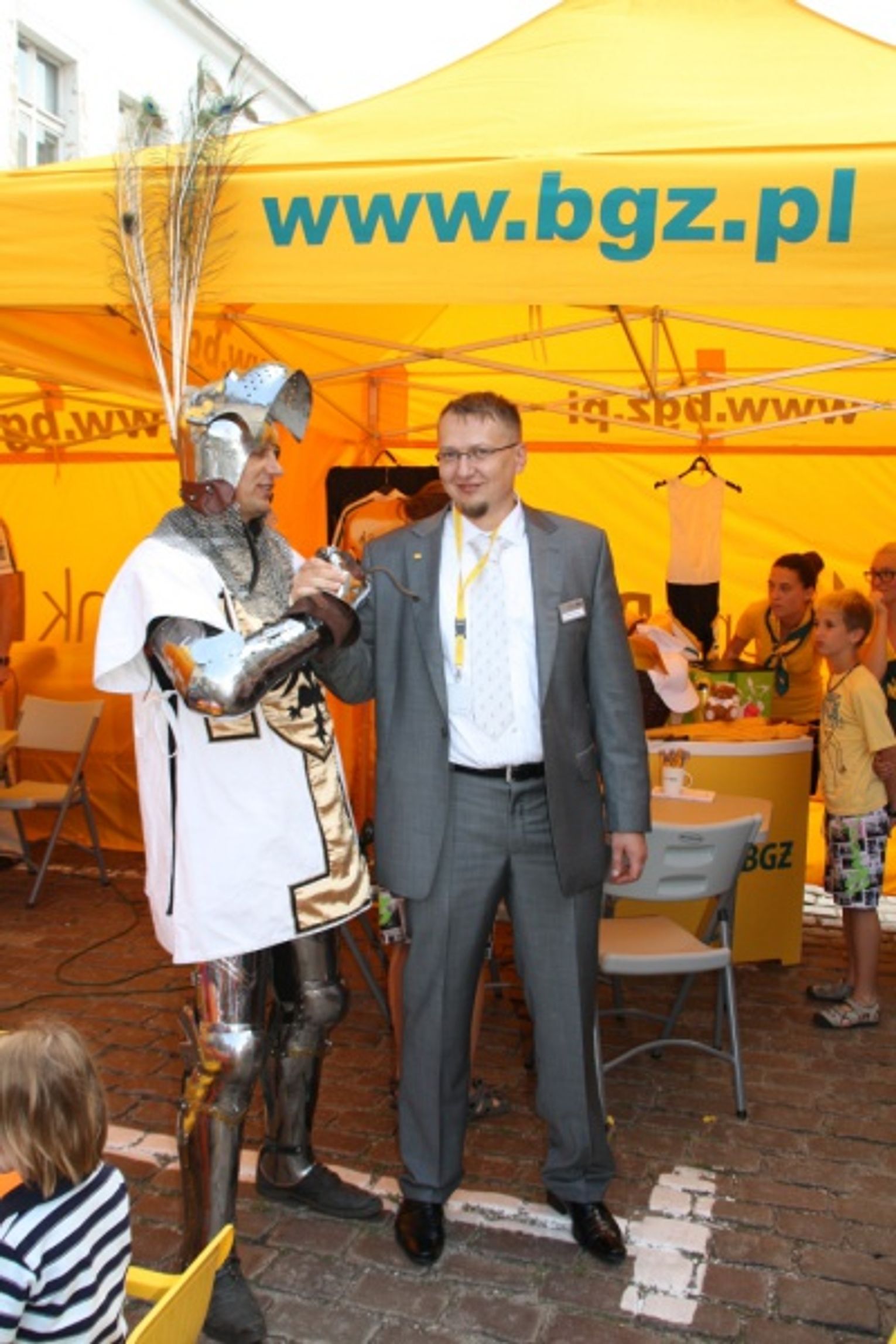 Przed wejściem do banku stanęły słonecznie żółte namioty i wielki balon z logo BGŻ. Do jednego z namiotów ustawiła się długa kolejka. Powód? Gość specjalny - Marcin Mroczek, specjalnie dla mieszkańców Gniewu. Rozdawał autografy, opowiadał o swojej aktorskiej przygodzie, pozował do zdjęć. Jak to w tradycji gniewskiej przystało nawet otwarcie banku nie może obyć się bez udziału rycerzy, bo Gniew to przecież rycerskie miasto. Stąd udział mistrza krzyżackiego. Był też kącik plastyczny i malowanie twarzy, z którego korzystały przede wszystkim dzieci.