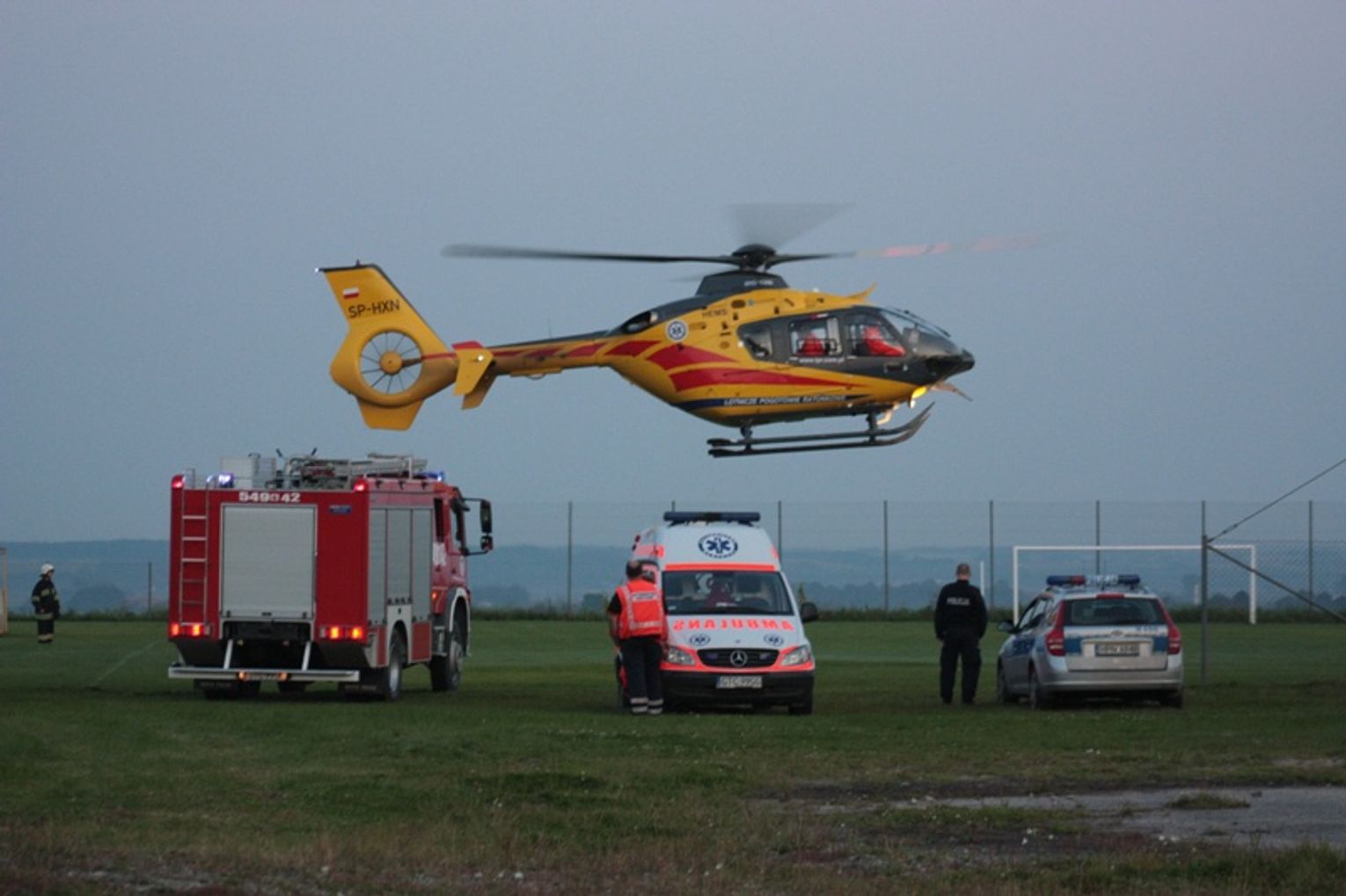 GNIEW. Na drodze krajowej nr 91 w miejscowości Rakowiec pod Gniewem volvo osobowe uderzyło w motocykl. W wypadku trzy osoby zostały ranne (pasażer auta, motocyklista oraz pieszy). Jedną z rannych osób w stanie ciężkim przetransportowano karetką do Gniewu, skąd zabrał ją śmigłowiec pogotowia ratunkowego.