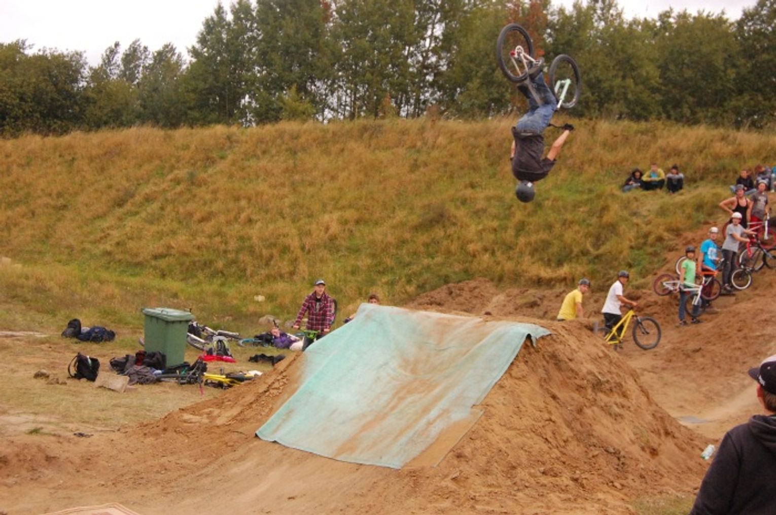 - Dirt jumping polega na skakaniu na ziemnych skoczniach – mówi Andrzej Karczmarek, uczestnik zawodów, mieszkaniec Gdyni, na co dzień student architektury na Politechnice Gdańskiej. – W skrócie, chodzi o wykonanie jak najbardziej efektownych powietrznych ewolucji. W tych zawodach chodzi o to, by zrobić jak najlepsze tricki na wszystkich trzech skoczniach. Trenuję ten sport ok. 3 lat, również na skateparkach. Wcześniej trochę jeździłem po lesie i ścigałem się na rowerach MTB. Na dwóch kółkach jeżdżę od dziecka. Obecnie na BMX – rowerze bez amortyzatorów, przerzutek i hamulców. Rower ten ma dwa małe koła (20 cali) z bardzo dużym ciśnieniem. Cała konstrukcja jest bardzo wytrzymała i wzmocniona dodatkowym spawaniem. Duble tailwhip jest dość efektownym trickiem, który starałem się dziś wykonać. Polega to na wyrzuceniu roweru do tyłu i wykonaniu dwóch obrotów wokół własnej osi w powietrzu oraz pokonaniu następnej przeszkody.
