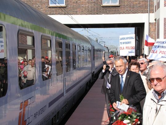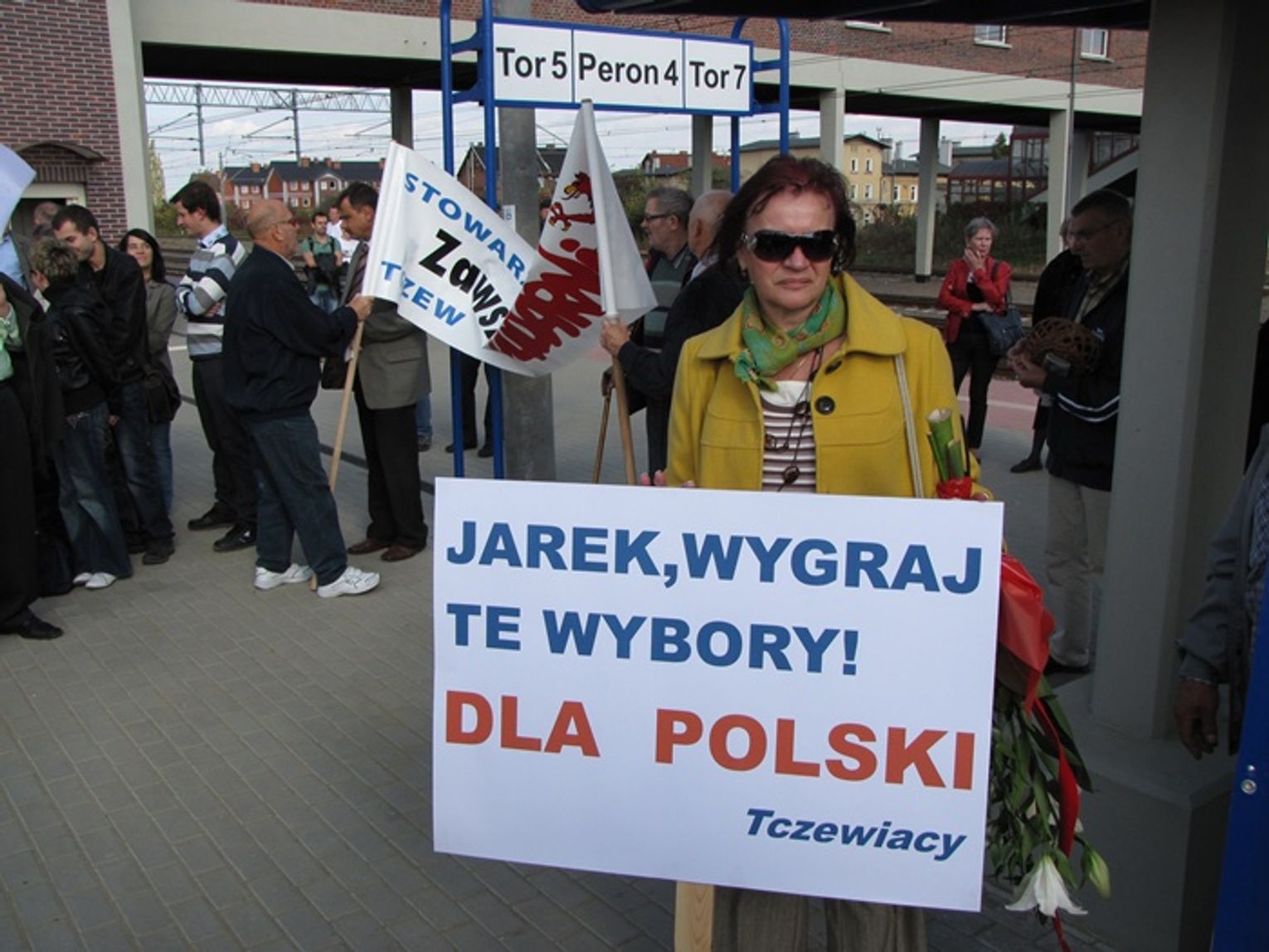 TCZEW. W drodze do Gdańska, pociąg z Jarosławem Kaczyńskim na kilka minut zatrzymał się na peronie dworca kolejowego w Malborku a potem w Tczewie. Prezes Prawa I Sprawiedliwości w krótkim przemówieniu mówił o optymistycznych dla swojej partii sondażach oraz zachęcał do głosowania w niedzielnych wyborach na tczewskiego posła PiS Kazimierza Smolińskiego.