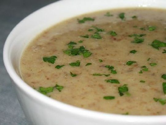 Wykonanie: Chleb pokruszyć, zalać gorącą wodą z dodatkiem jednej łyżeczki warzywnej przyprawy, odstawić do napęcznienia. Cebulę pokroić w kostkę i zeszklić na tłuszczu, dodać do chleba i zagotować mieszając na niewielkim ogniu. Można doprawić vegetą. Żółtka ubić lekko z mlekiem, dodać kilka łyżek ostudzonej zupy i wlać do garnka. Delikatnie wymieszać. Zupę można posypać zieleniną.