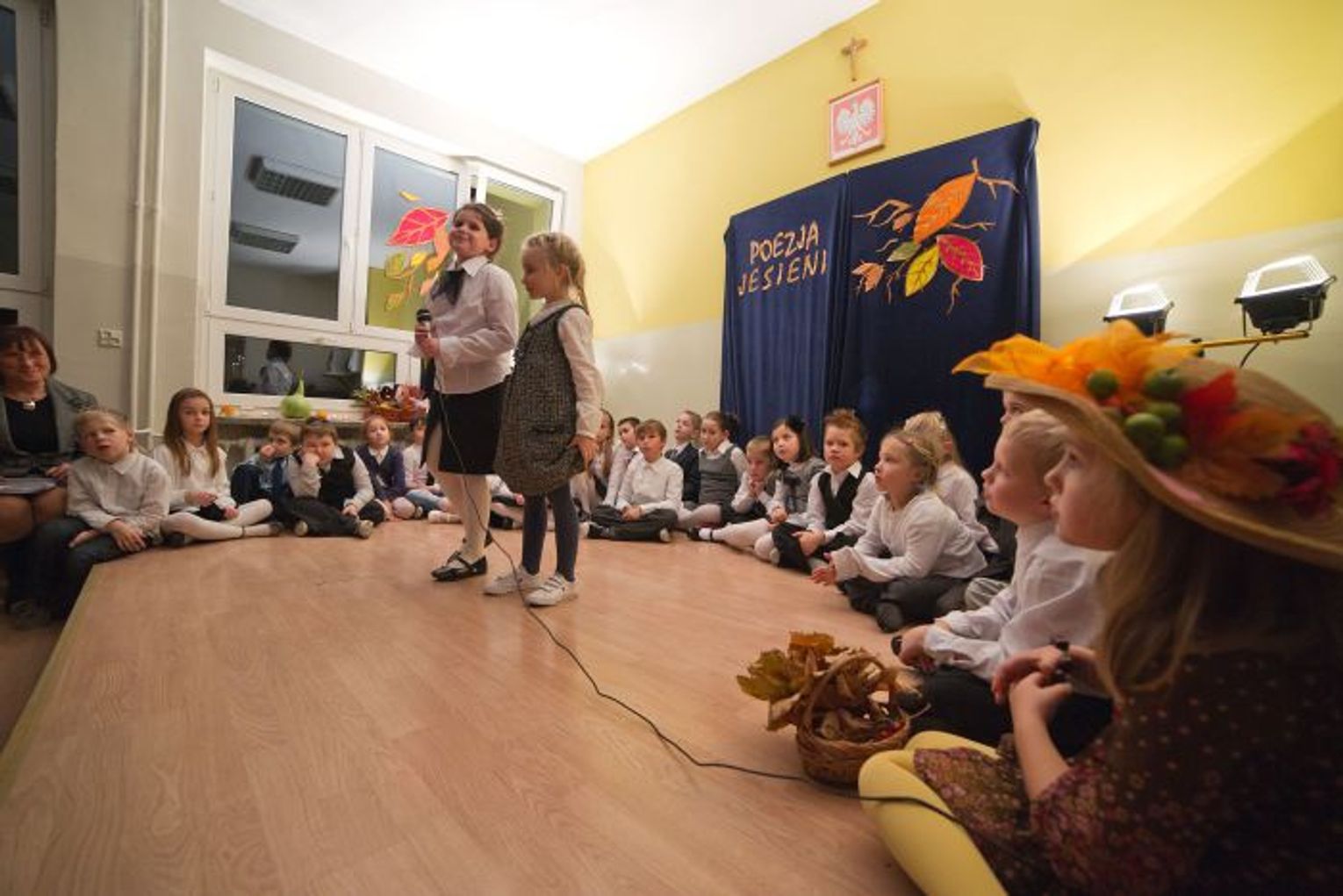 Wicedyrektor szkoły Joanna Wierzbicka recytowała wiersz „Jesień”. Weszła na scenę z wielkim koszem darów jesieni, w kapeluszu z liści. W „Jesienną Zadumę” wprowadziła zebranych wicedyrektor Lucyna Alberska.