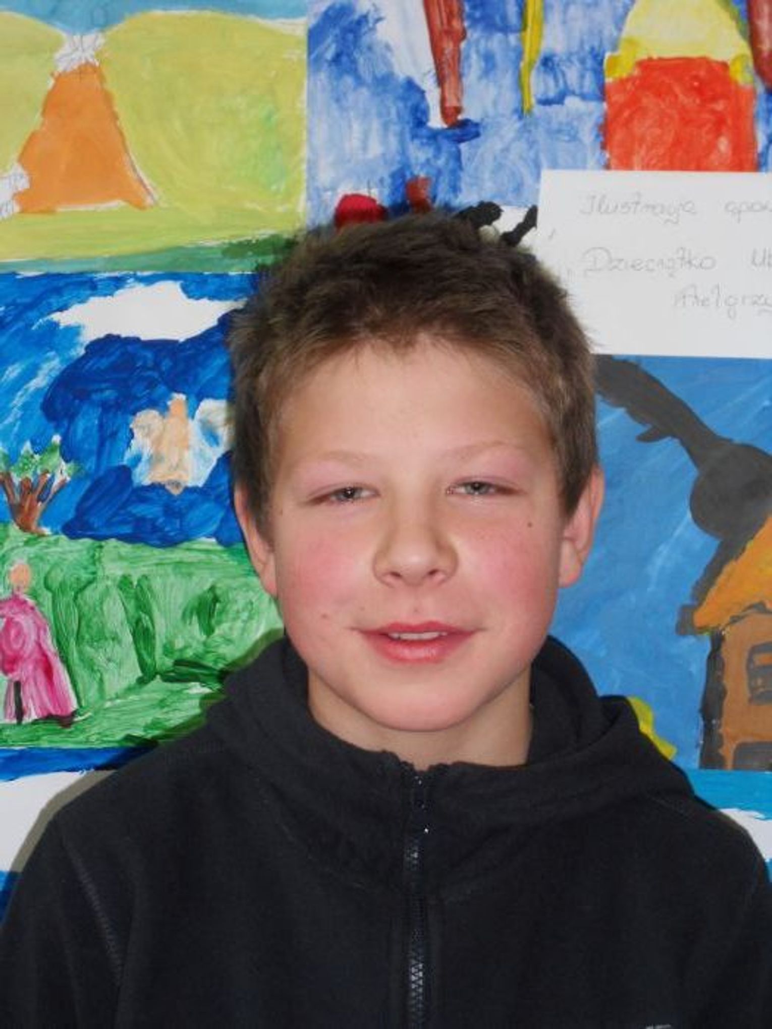 Paweł Chrzanowski, kl. VI - najlepsze oceny z: historii, w-f, przyrody, matematyki i j. angielskiego. Laureat konkursów sportowych. Lubi grać w piłkę i na komputerze.