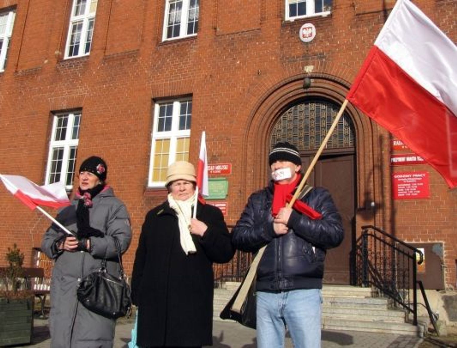 Czwórka mieszkańców protestowała przeciwko nie przyznaniu Telewizji Trwam miejsca na multipleksie cyfrowym. Protestujący trzymali w rękach biało – czerwone flagi, przed urzędem powiesili transparent z hasłem „Polsko wróć do Boga” i obrazkiem Matki Boskiej Częstochowskiej, a protestujący mężczyzna zakleił sobie usta symbolicznie nie zgadzając się „na ograniczanie wolności słowa przez Krajową Radę Telefonii i Telewizji”. Dodajmy, że w zeszłym tygodniu Fundacja Lux Veritatis złożyła skargę do Wojewódzkiego Sądu Administracyjnego w Warszawie na decyzję KRRIT. Wniosek odwoławczy Lux Veritatis został odrzucony w styczniu, ponieważ zdaniem KRRiT sytuacja finansowa fundacji nie wróżyła powodzenia przedsięwzięcia. Niedawno w rozmowie z „Gazetą Tczewską” posłanka Prawa i Sprawiedliwości Anna Fotyga stwierdziła, że nie przyznanie telewizji o. Tadeusza Rydzyka koncesji na nadawanie cyfrowe ma podłoże polityczne: