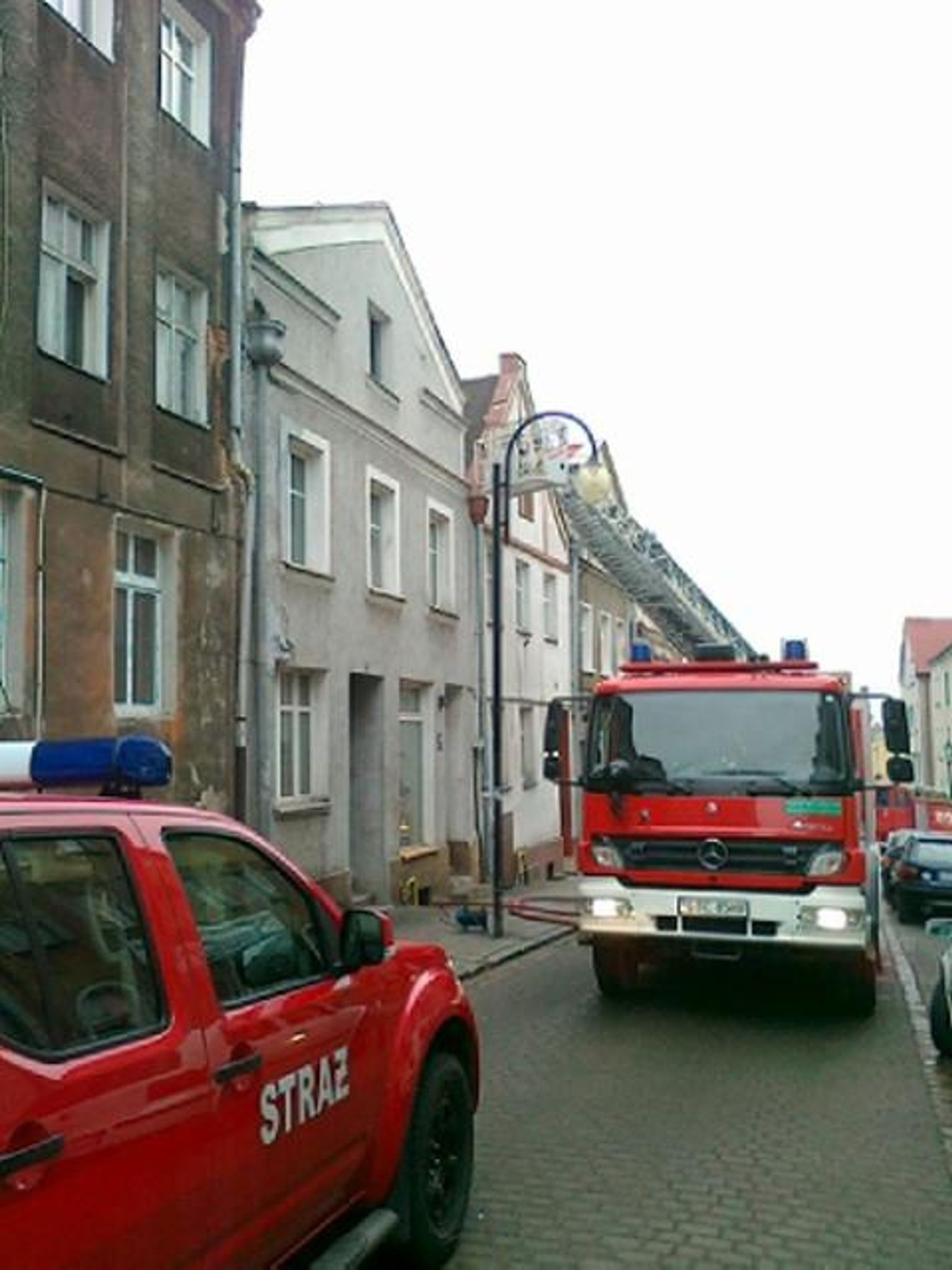 TCZEW. W Tczewie w budynku mieszkalnym na ulicy Okrzei 14 wybuchł pożar. Prowadzona jest akcja straży pożarnej. Ewakuowano mieszkańców z dwóch mieszkań. Zły stan techniczny komina był przyczyną pożaru kamienicy,