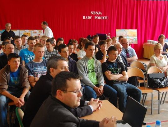 Podczas sesji Rady Powiatu radni przekazali szkole czystą kronikę do wypełnienia oraz wręczyli tablo z... własnymi autografami.