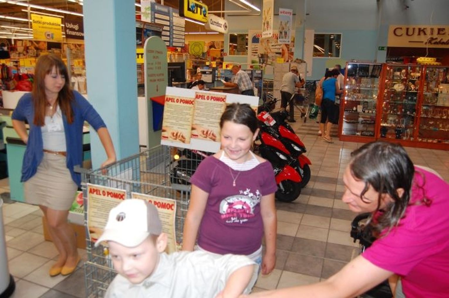 W hipermarkecie Carrefour w piątek i sobotę, 17-18 sierpnia, klienci mogli składać dary do specjalnego kosza ustawionego tuż za jedną z kas. Z punktu informacji przez megafon informowano klientów, w jakim celu prowadzona jest akcja. W sklepie rozwieszono plakaty z opisem i celem zbiórki.