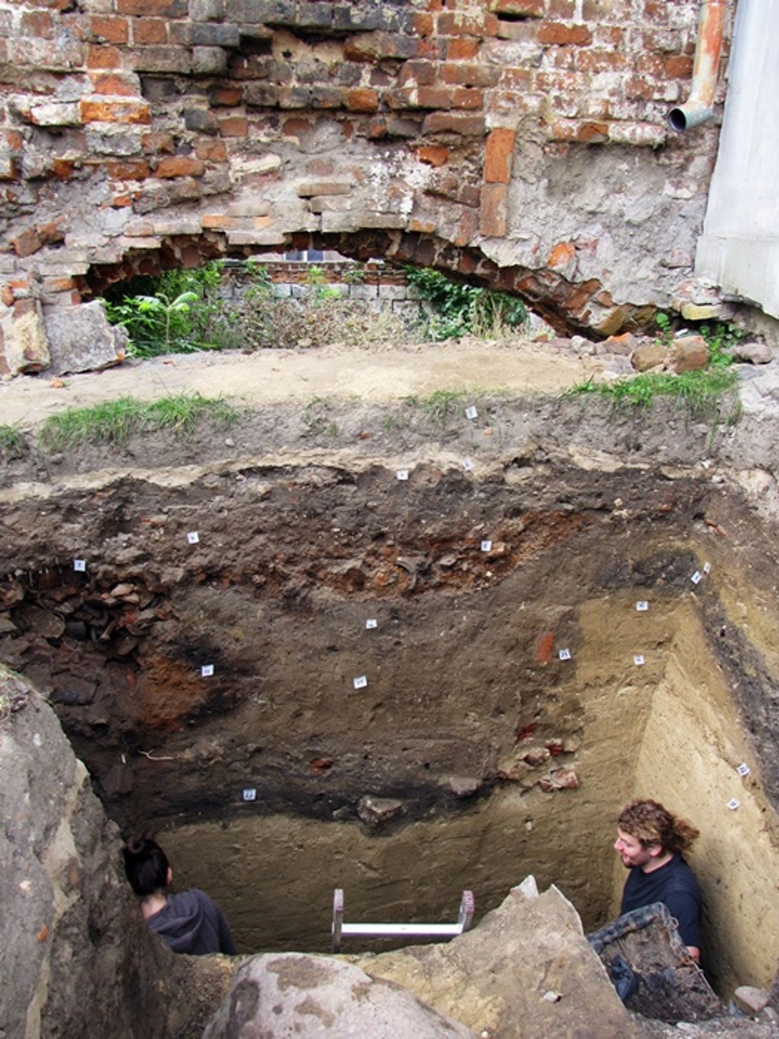 Aby dotrzeć do najstarszej warstwy archeolodzy musieli przebić się przez ponad trzymetrową warstwę różnego rodzaju śmieci oraz pozostałości kanału naprawczego warsztatu samochodowego. Dotarli już do warstwy pełnej potłuczonej ceramiki średniowiecznej, prawdopodobnie naniesionej przez wodę, co może wskazywać na to, że rzeczywiście otwór pełnił funkcję wylotu cieku wodnego. W poparciu tej hipotezy mogą pomóc badania biologiczne znalezionych resztek roślin. Wykopaliska potrwają do początku przyszłego tygodnia.