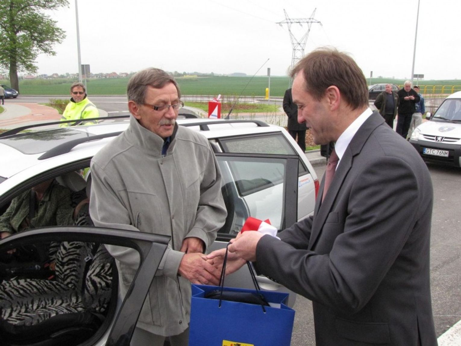Po przecięciu symbolicznej wstęgi rozpoczęło się oczekiwanie na pierwszego kierowcę na nowej drodze. Okazał się nim Józef Wasiuk, były dyrektor Zespołu Szkół nr 1 w Pelplinie.