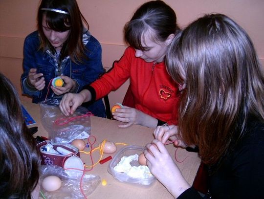 - Codziennie od godziny 17 do 21, a w weekendy do 24-tej malowaliśmy te pomieszczenia. Efekt był niesamowity. Zajęło nam to ponad miesiąc – wspomina Katarzyna Puczyńska, założycielka Koła Artystycznego. - Drugim naszym wyzwaniem było malowanie sal maluszków w Przedszkolu w Gniewie. Wymalowaliśmy dwie sale do zabaw, jadalnię, szatnię i korytarz. Do dziś można podziwiać nasze dzieło w przedszkolu. Potem zajęliśmy się malowaniem świetlicy szkolnej. Malowaliśmy również ogrodzenie wokół Przedszkola. Ale nie tylko malujemy. Posadziliśmy ok. 40 drzewek na jego terenie. Zbieraliśmy zabawki i słodycze dla Domu Dziecka w Tczewie. Malowaliśmy również miasto Betlejem do jasełek szkolnych. Był to obraz o wymiarach 10 metrów na 3 m. Wszystkie prace wykonaliśmy nieodpłatnie. Ponadto dzieciaki świetnie posługują się techniką decoupage. Robią aniołki i inne ozdoby z masy solnej. Uczą się również gotować. Robiliśmy jajecznicę, sałatki warzywne i owocowe, piekliśmy naleśniki i gofry. Na kółku artystycznym przygotowaliśmy 80 kotylionów i czapeczek na bal karnawałowy. W ciągu 9 lat pracy nauczycielskiej K. Puczyńskiej, przez Kółko Artystyczne przewinęły się setki uczniów. Nikt nie policzył dokładnie ile, ale nie to jest według nauczycieli ważne. W tym roku jest w kółku ok. 20 gimnazjalistów. Zaczęło się od witraży Pracę w gniewskim gimnazjum Katarzyna Puczyńska rozpoczęła w 2001 r. Co ciekawe, nie była ani humanistką, ani tym bardziej po żadnym artystycznym kierunku studiów! - Na początku nie miałam całego etatu nauczycielki matematyki, więc uzupełniono mi godziny świetlicą – wspomina. - Świetlica była czynna do godz. 16-tej, więc uczniowie najpierw przychodzili odrabiać zadania domowe, potem zaczęliśmy grywać w różne gry planszowe. Na rynek wchodziły farby window color, więc z koleżanką Moniką Gort zaczęłyśmy spędzać coraz więcej godzin po pracy na malowaniu witraży. Dzieciakom bardzo się malowanie witraży spodobało, więc zaczęliśmy produkcję witraży na masową skalę. Wówczas mogłyśmy zorganizować kiermasze, a uzbierane pieniądze przeznaczyć na materiały do pracy w świetlicy. Dzięki temu powstało Kółko Artystyczne. Kolejnym naszym przedsięwzięciem było wykonywanie aniołków z masy solnej i ich ręczne malowanie.