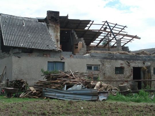 - Mama była sama w domu, ja byłem w pracy, a tata pojechał do miasta – relacjonuje drżącym głosem syn państwa Dysarz, Grzegorz. – Było ok. godz. 16 lub 17, w piątek, gdy nagle zrobiło się ciemno. Mama usłyszała straszny hałas, tak potworny jakby to było trzęsienie ziemi. Przerażona wybiegła na podwórze, na którym leżała duża część dachu naszego domu, trochę cegieł. Wokół szalała wichura unosząca ze sobą w powietrzu różne przedmioty, połamane gałęzie, nawet drzewa. Nie było gdzie uciekać! Mama nie wiedziała co robić, co się dzieje, kiedy to się skończy. I była zupełnie sama.
