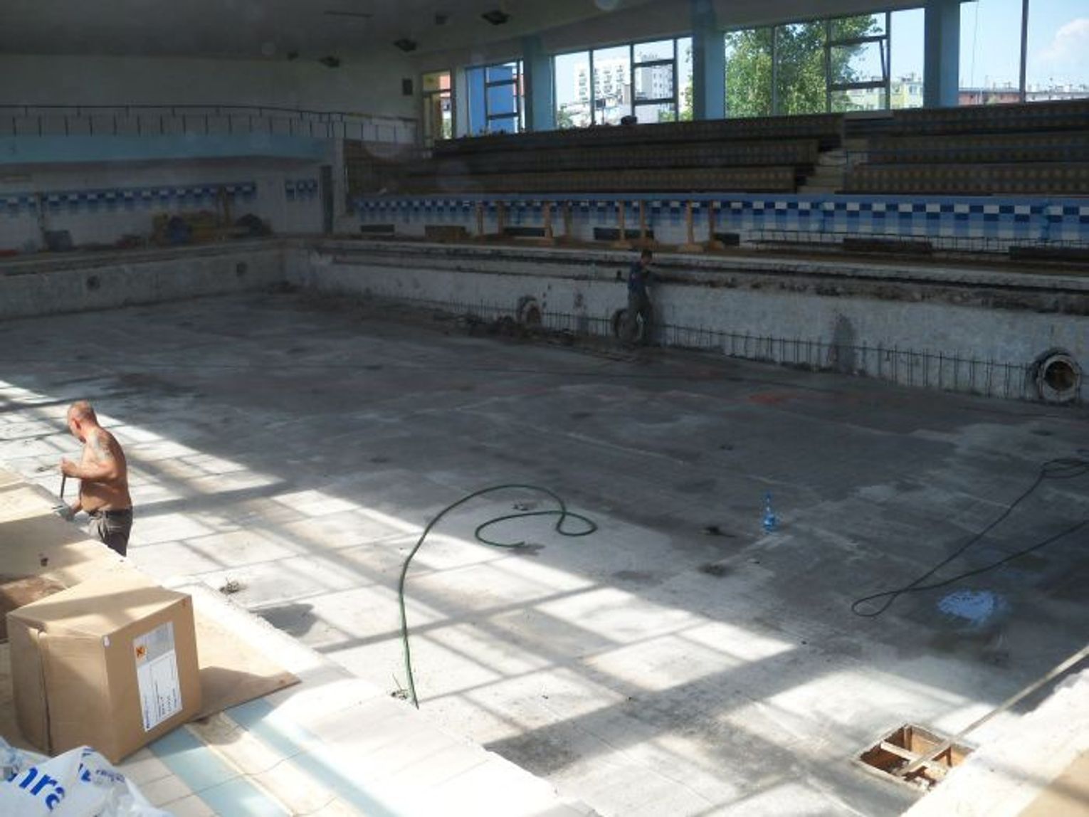 Są dodatkowe prace, bo np. po odkryciu z kafelek słupów na małym basenie, okazało się, że ich konstrukcja jest słaba. A trzyma ona całe dno dużego basenu, więc wymaga wzmocnienia. Mamy stary obiekt o starej konstrukcji. Nie jest to tragedia, ale wymaga dodatkowych prac. Mały basen planujemy otworzyć 6 września. Po zamknięciu basenu odkrytego musimy mieć czas na rozruch technologiczny, bo te same maszyny, ta sama stacja uzdatniania wody pracuje na rzecz obu basenów - odkrytych i krytego. Mam nadzieję, że to się uda. Pewne zagrożenie istnieje, bo duży basen jest robiony razem z małym (sufit małego jest dnem dużego). Są wklejane lasze metalowe, obklejane żywicą, trzeba je antykorozyjnie zabezpieczyć, porobić tynki na suficie. Rozmawiamy z wykonawcą, by zdążył z remontem małego basenu do końca sierpnia.