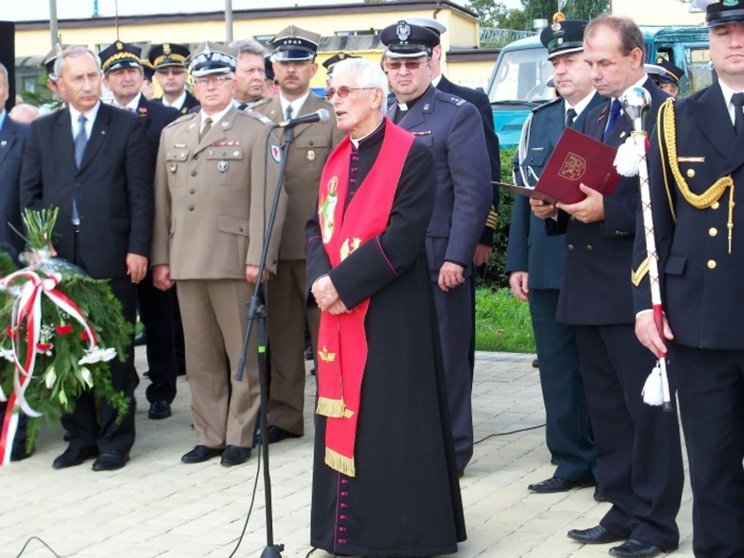 - Od tego czasu, kiedy tu się spotykamy, w tym takim znamiennym dla naszego miasta, dla naszej okolicy miejscu, zawsze pamiętamy o Panu Bogu - powiedział ks. prałat Stanisław Cieniewicz, proboszcz parafii NMP Matki Kościoła w Tczewie. - Pamiętając o tych, którzy ofiarowali swoje życie, dziękujemy za ich ofiarę. Mam dzisiaj stułę kolejarską. Jej kolor jest czerwony. W liturgii świętej czerwień oznacza dwie ważne sprawy: miłość i męczeństwo. Miłość i męczeństwo zawsze idą w parze. Największym darem miłości jest ofiarować swoje życie. Dlatego wspominamy przez ten czerwony kolor żołnierzy, ależ też kolejarzy z Szymankowa i celników. Ich krew jest najcenniejszy darem jaki mogli dać i Bogu, i ojczyźnie. Nasza ziemia tczewska jest ubogacona krwią męczenników. W moim kościele, wybudowanym w wolnej Polsce, są tablice z nazwiskami męczenników, 410 zamordowanych mieszkańców Tczewa i powiatu. A co dopiero powiedzieć o ziemi kociewskiej, o niedalekim Szpęgawsku, gdzie są mogiły 7 tys. niewinnie zamordowanych Polaków. Jakże jest ubogacona ta ziemia krwią męczenników... Więc ten kolor zawsze nam przypomina jaką cenę zapłacili nasi poprzednicy, żeby Polska była piękna. Mam na myśli, żeby nie tylko była dobra, wolna, niepodległa, ale żeby była piękna. Piękna jak ten sztandar wojskowy, jak nasza flaga narodowa. Wpatrujmy się w te przepiękne kolory, dwa. Jeden biały, który nie oznacza niczego innego jak czystość, piękno, uczciwość, prawdę, szlachetność, godność człowieka. Ale też jest czerwień, czyli gotowość do ofiary, podjęcia trudu walki, jak trzeba, i ofiarowania życia.