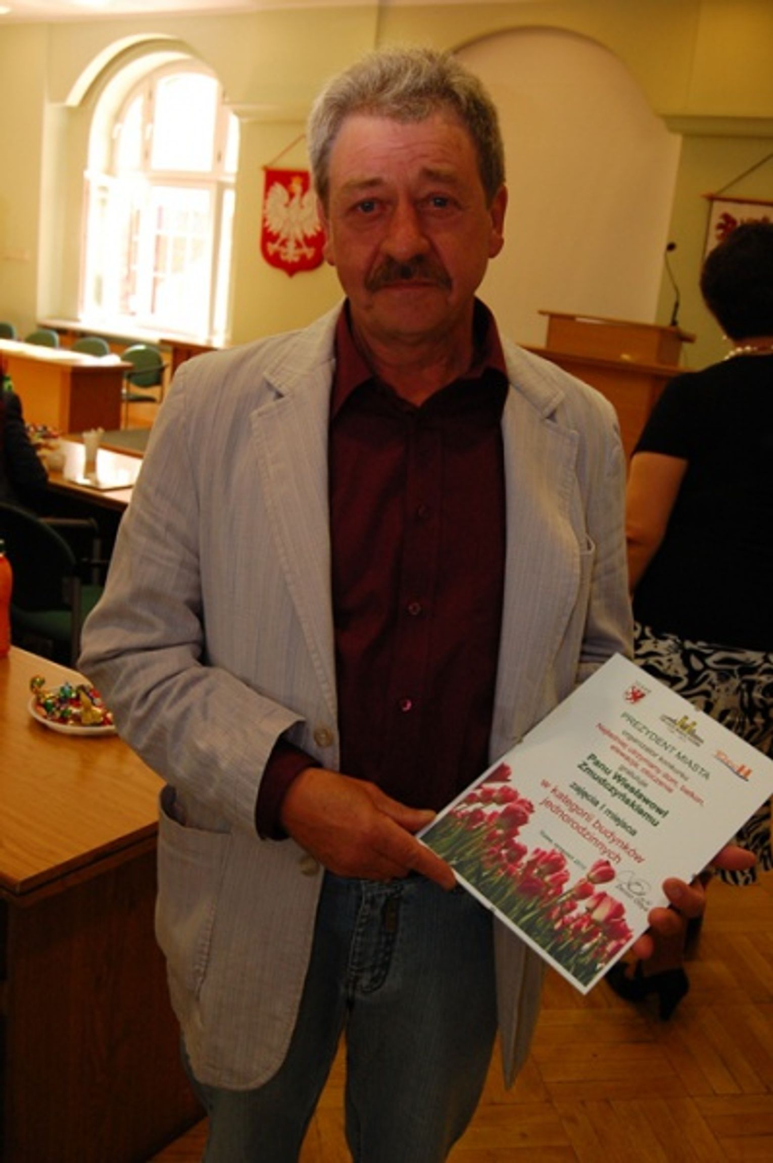 Nagrodę za pierwsze miejsce za najładniejszy wygląd budynku jednorodzinnego wraz z otoczeniem odebrał Wiesław Zmudczyński z os. Staszica. Fakt, że zdobył tak wysokie uznanie jury był dla niego samego i jego żony sporym zaskoczeniem. W sumie zdobyli 15 pkt. O trzy punkty wyprzedzili Wioletę i Krzysztofa Ociepę.
