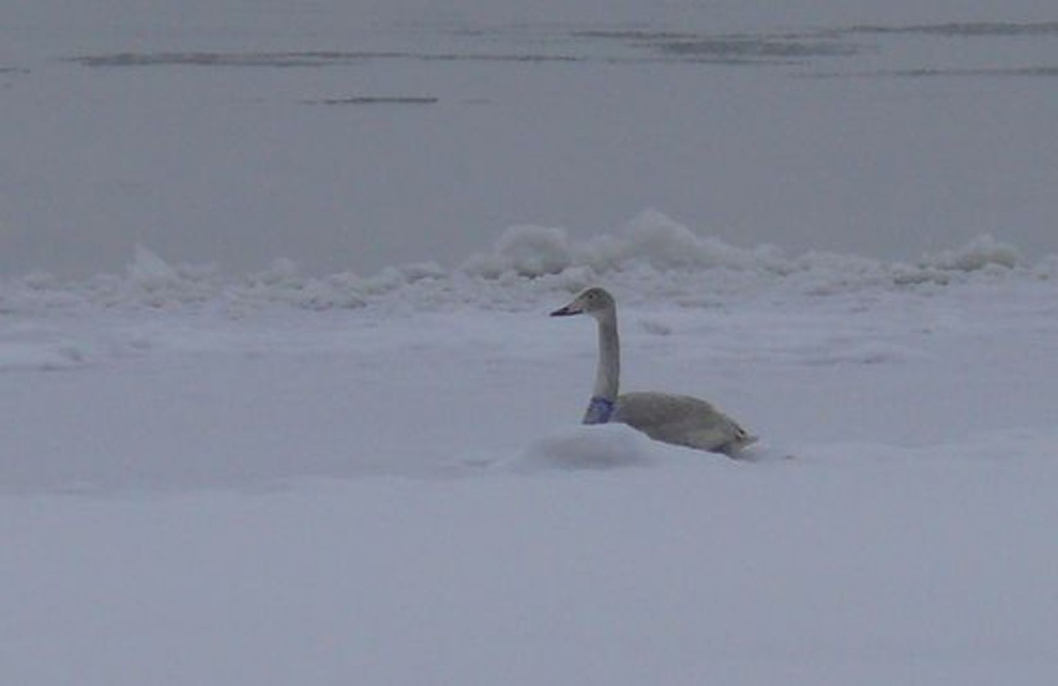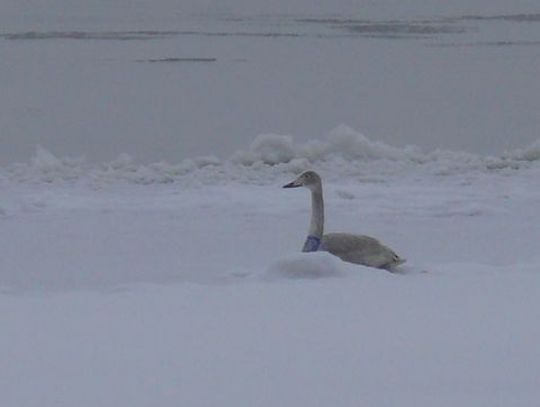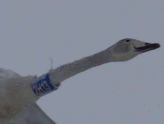 Podczas rutynowej kontroli w okolicach ruin byłego mostu w Opaleniu, na krze pojawił się młody łabędź krzykliwy. Gatunek ten różni się od powszechnie znanego łabędzia niemego żółto-czarnym dziobem oraz znacznie donośniejszym głosem. Ten obserwowany nad Wisłą pod Opaleniem również nie szczędził gardła. (Może gdyby zaobserwowano go w Wigilię okazałoby się, że woła „Litwo! Ojczyzno Moja”?). W Polsce gatunek ten gniazduje sporadycznie. Znacznie częściej zobaczyć go można na przelotach. Zaobserwowany ptak miał na szyi niebieską obrożę z numerem. Gniewskim ornitologom udało się go sfotografować . Co najważniejsze udało się też odczytać biały numer na obroży. Przesłano go do polskiej centrali obrączkarskiej w Stacji Ornitologicznej w Gdańsku. W jednostce tej znajduje się baza danych wszystkich numerów obrączek założonych ptakom na świecie. Jak się okazało „opierzony jumbo jett” przyleciał z nad Litwy ze stawów rybnych w okolicach Wilna, gdzie w sierpniu tego roku został zaobrączkowany przez litewskich ornitologów. – To młody osobnik, jeszcze miesiąc temu pływał z rodzeństwem i rodzicami w miejscu gniazdowania. Wielkie dzięki za zdjęcie! – napisał Julius Morkunas – ornitolog z Litwy.