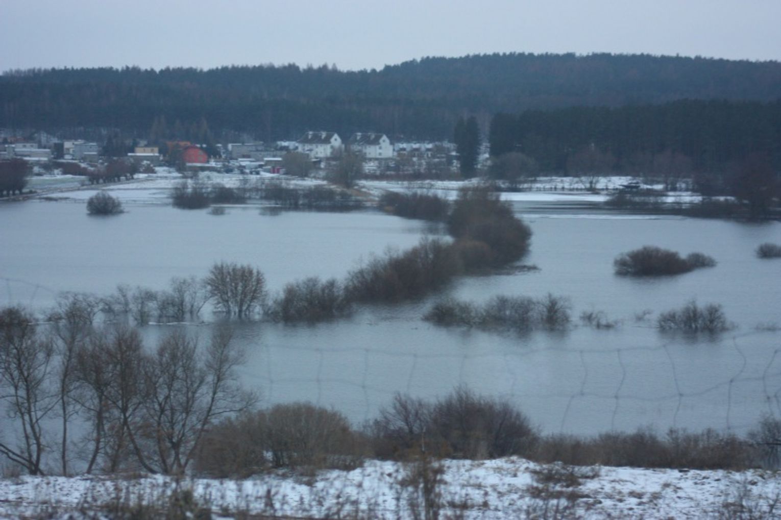 Stany alarmowe zostały przekroczone. W dorzeczu Wisły i Wierzycy utworzyło się ogromne jezioro. Co dzieje się z klimatem? Pytanie to pojawia się coraz częściej. Nie wszyscy jednak chcą słyszeć odpowiedź i twierdzą, że takie anomalie to normalne. Normalne są takie ilości śniegu, jakie spadły w grudniu. Normalna jest też odwilż, jaka dotknęła nas w styczniu. Mniej normalny jest jednak bilans opadów z jakimi mieliśmy do czynienia w ubiegłym roku. Styczniowa powódź to właściwie efekt tego co działo się w pogodzie w 2010 roku. Trzykrotne wezbranie wód w związku z nadzwyczaj głębokimi niżami genueńskimi, które nękały południową Polskę spowodowało, że poziom wód gruntowych znacząco wzrósł. Po wrześniowej powodzi woda pozostała płytko w gruncie. W grudniu przyszła wczesna zima i mrozy. Śnieg jaki spadł w grudniu w wielu miejscach o ponad połowę przekroczył miesięczne normy opadów. Gwałtowna odwilż sprawiła, że w ciągu tygodnia ilość stopniałego śniegu odpowiadała ilości wody jaka spada na dany region w ciągu dwóch miesięcy. To tak jakby w czasie tygodniowej odwilży spadło ponad 100 litrów śniegu na metr kwadratowy. Ziemia, ani rzeki nie były w stanie przyjąć takiej ilości wody i tak od maja 2010 roku gleba nasączona jest jak gąbka. Stąd krajobraz jaki mamy dzisiaj w międzywalu Wisły. Na szczęście daleko było do stanu Wisły z zeszłorocznej wiosennej powodzi (obrazują to dwie fotografie zalanego „witacza” w pobliżu przeprawy promowej przez Wisłę w Gniewie). Woda jednak już zmusiła do ewakuacji z międzywala ekip i sprzętu budowlanego z placu budowy mostu przez Wisłę w okolicy Aplinek i Lipianek. Podtopione zostały niektóre gospodarstwa i piwnice domów na Nizinie Walichnowskiej.