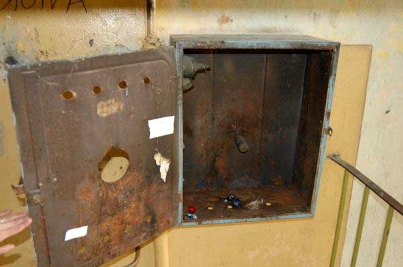 Nie bez powodu inspektor nadzoru „przyczepił” się do stanu przeciwpożarowego budynku. Główny zarzut dotyczył zagrożeń dotyczących sieci elektrycznej. Od tego, co zobaczyliśmy w mieszkaniach ludzi i na korytarzach, włos jeży się na głowie. Kable biegną pod cieknącym dachem korytarza bez żadnego zabezpieczenia. Tak samo jest w lokalach. Do tego w skrzynkach rozdzielczych widać plątaninę kabli pozawijanych tylko w antyizolacyjne osłonki.