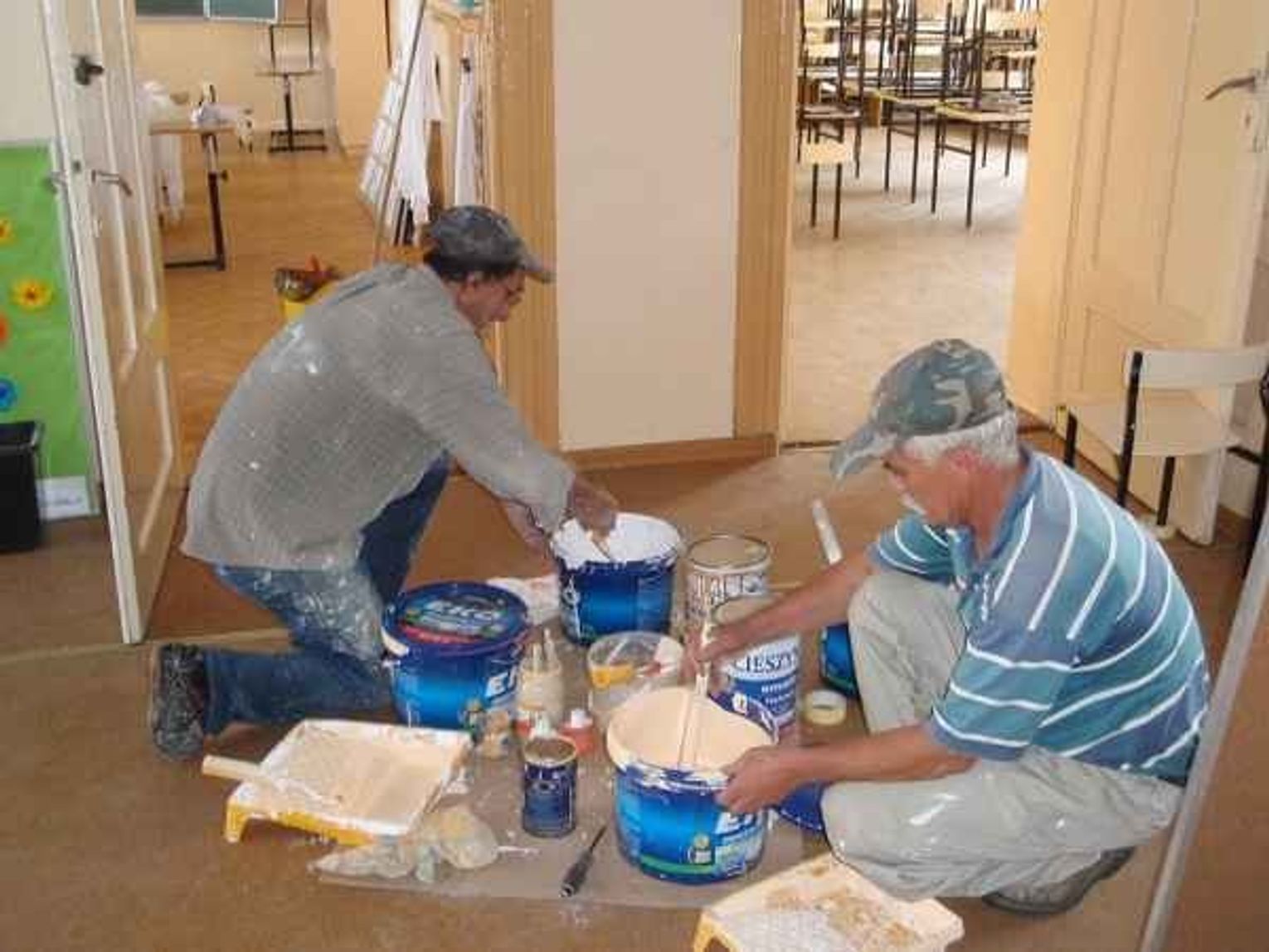 Faktycznie, na korytarzu poustawiano puszki z farbami. Drzwi do klas szeroko pootwierane. Widać poustawiane rusztowania do malowania sufitów.