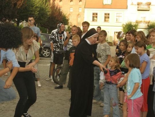 - Gniewska młodzież dziękując za tegoroczne wakacje przygotowała ciekawy program artystyczny – mówi siostra Milena Banach, która organizowała wakacje młodych ludzi, zabiegając o sponsorów. – Program zgromadził sporą widownię. Przedstawiliśmy go na Starówce w Gniewie, która nadawała się świetnie do tego celu. Do dziś można zobaczyć pozostałości kolorowej sceny. Nastolatki popisały się swoimi zdolnościami, wspaniale dbając o choreografię taneczną i oprawę muzyczną przedstawień. Wystawiono „Kaczkę Dziwaczkę”, „Pszczółkę Maję” oraz dano pokaz taneczny. Ta młodzież jest ofiarna, twórcza i chętna do współpracy.