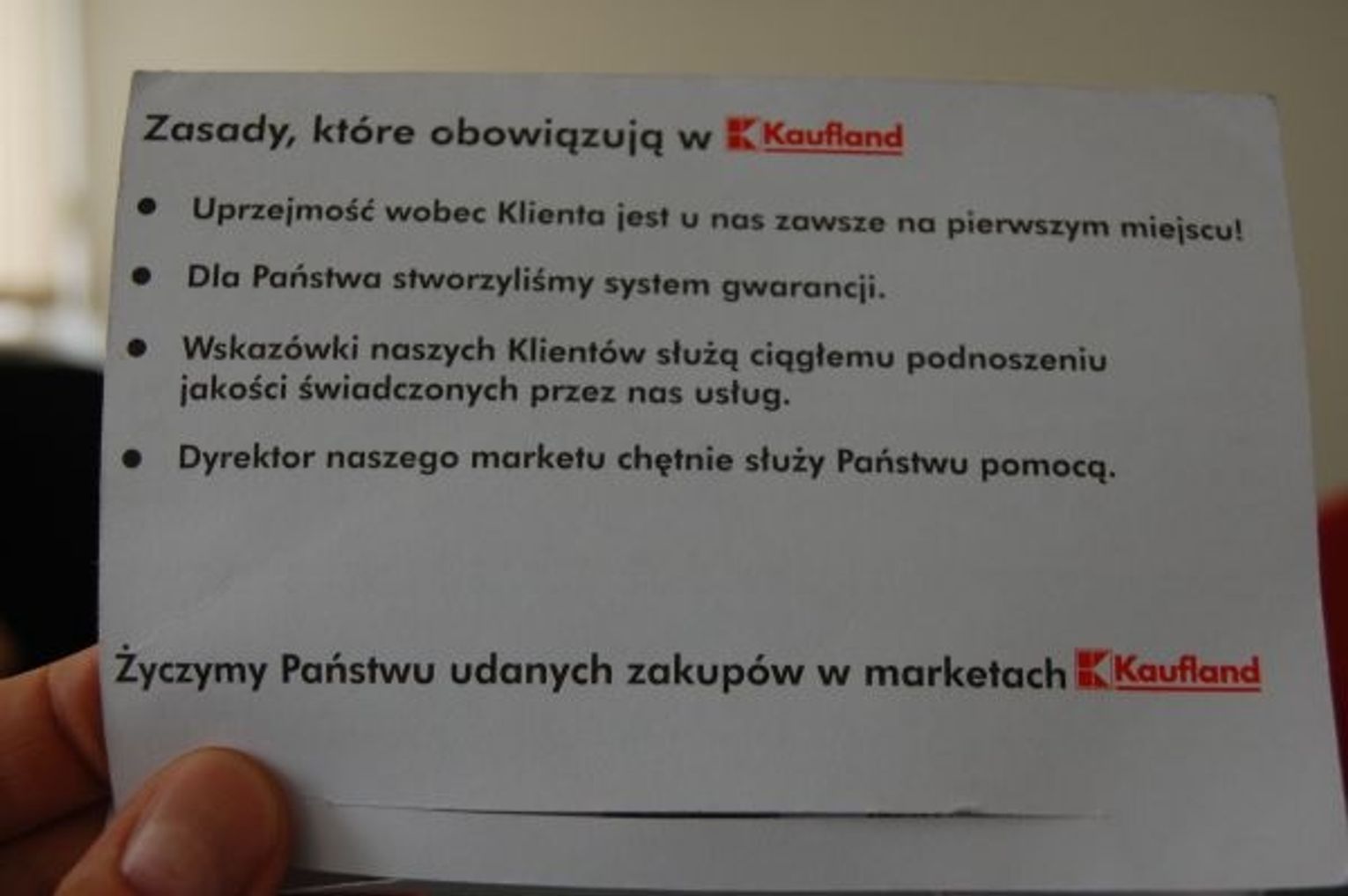Jeden z pracowników Kauflandu stwierdził, że kobieta, co do której były podejrzenia, zachowywała się bardzo nerwowo. Zasugerowano, że nigdy nie spotkano się z podobną reakcją. Zapewniono, że klientka została potraktowana spokojnie, z kulturą, przeproszono ją dwukrotnie - zrobił to ochroniarz i dyrekcja Kauflandu.
