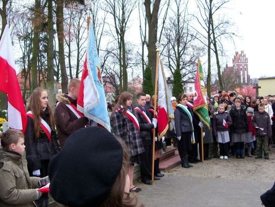 Po mszy św., przy dźwiękach orkiestry, jej uczestnicy przemaszerowali na pobliski cmentarz. Po odegraniu hymnu państwowego złożono wieńce i kwiaty oraz zapalono znicze pod obeliskiem. W imieniu władz samorządowych miasta i gminy kwiaty złożył wiceburmistrz Gniewa, Bogdan Olszewski. Były poczty sztandarowe, harcerze i zuchy, wielu mieszkańców. Ks. proboszcz wspomniał o potrzebie uporządkowania przez władze tego miejsca i pobliskich grobów legionistów, uczestników wojny polsko-bolszewickiej z 1920 r. Na cmentarzu jest siedem mogił żołnierzy, którzy walczyli o wolność Polski. Są na nich kwiaty i znicze, ale groby są zaniedbane. Nie ma też kostki na alejce prowadzącej do obeliska.