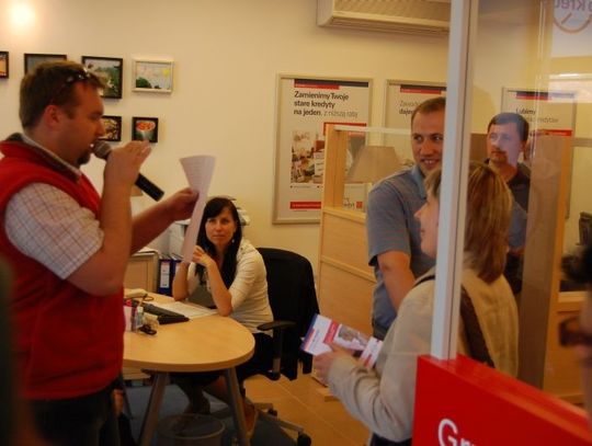 - Dopilnowaliśmy formalności – stwierdził krótko Marcin Wierzbicki, kierownik DB Kredyt Deutsche Bank. - Mamy pozwolenie na naszą akcję Wydziału Komunikacji Starostwa Powiatowego, Komendy Powiatowej Policji i Straży Miejskiej. Postanowiliśmy wyjść z naszą ofertą do przyszłych klientów, którzy są dla nasz najważniejsi. Świadomie zrezygnowaliśmy z oficjalnego otwarcia na rzecz mieszkańców.
