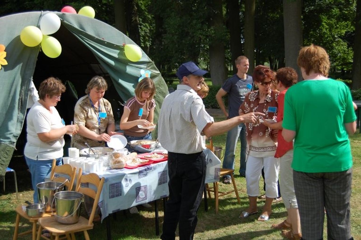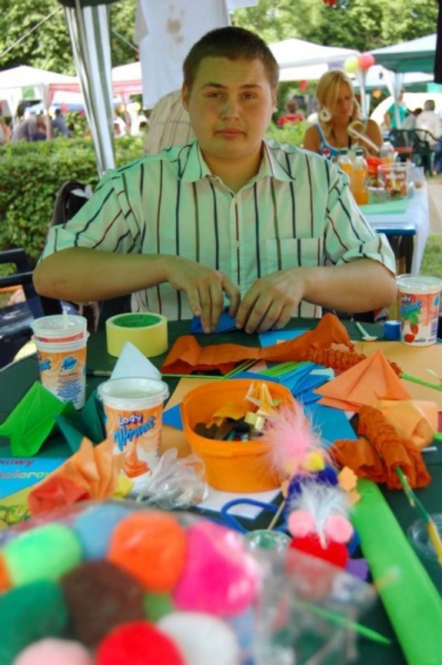 Każda z placówek, wśród których były DPS, Warsztaty Terapii Zajęciowych, Środowiskowe Domy Pomocy oraz Ośrodek Geriatryczny przygotowały stoiska artystyczno-rzemieślnicze. Co sprawniejsi niepełnosprawni odwiedzali poszczególne kramy i uczyli się czegoś nowego. Chociaż zdarzało się, że niektórzy woleli pozostać w swoim „kątku”, to jednak mnóstwo uczestników dało się wciągnąć do udziału w zabawie i zaglądania do sąsiadów.