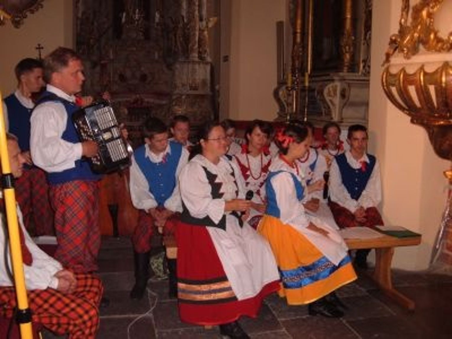 PIASECZNO. XV Przegląd Kociewskich Zespołów Folklorystycznych ku czci Władczyni Kociewia w Piasecznie rozpoczął się od mszy św, w której uczestniczyli prawie wszyscy wykonawcy, jak również m. in. ks. prałat Kazimierz Myszkowski - były wieloletni proboszcz parafii i Jan Ejankowski - inicjator Przeglądu.