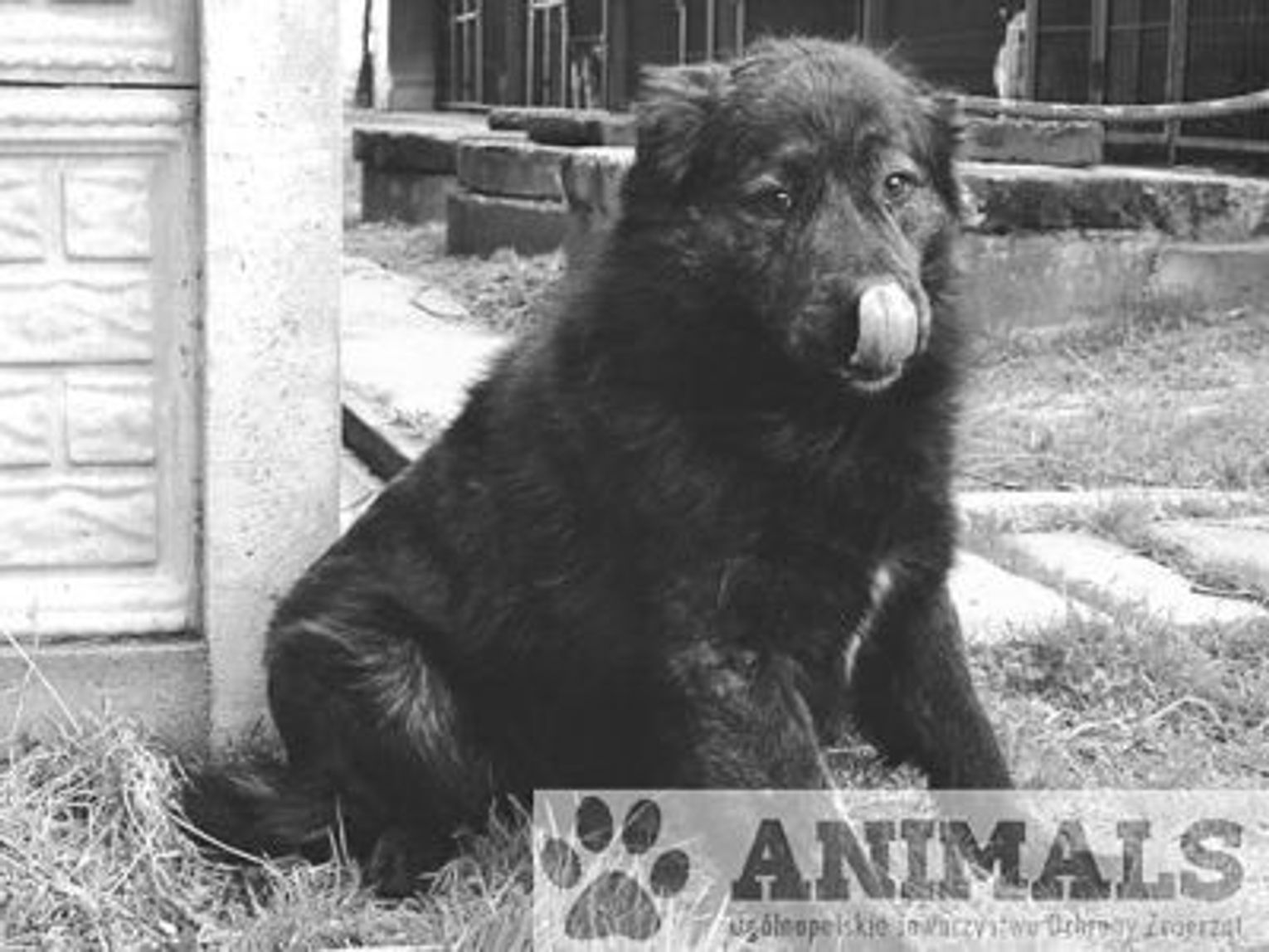 Foka - około 7-letnia suczka. Powyżej kolan, czarna podpalana. Spokojna i sympatyczna, nie lubi towarzystwa innych psów, szczególnie przy misce. Fot. Animals