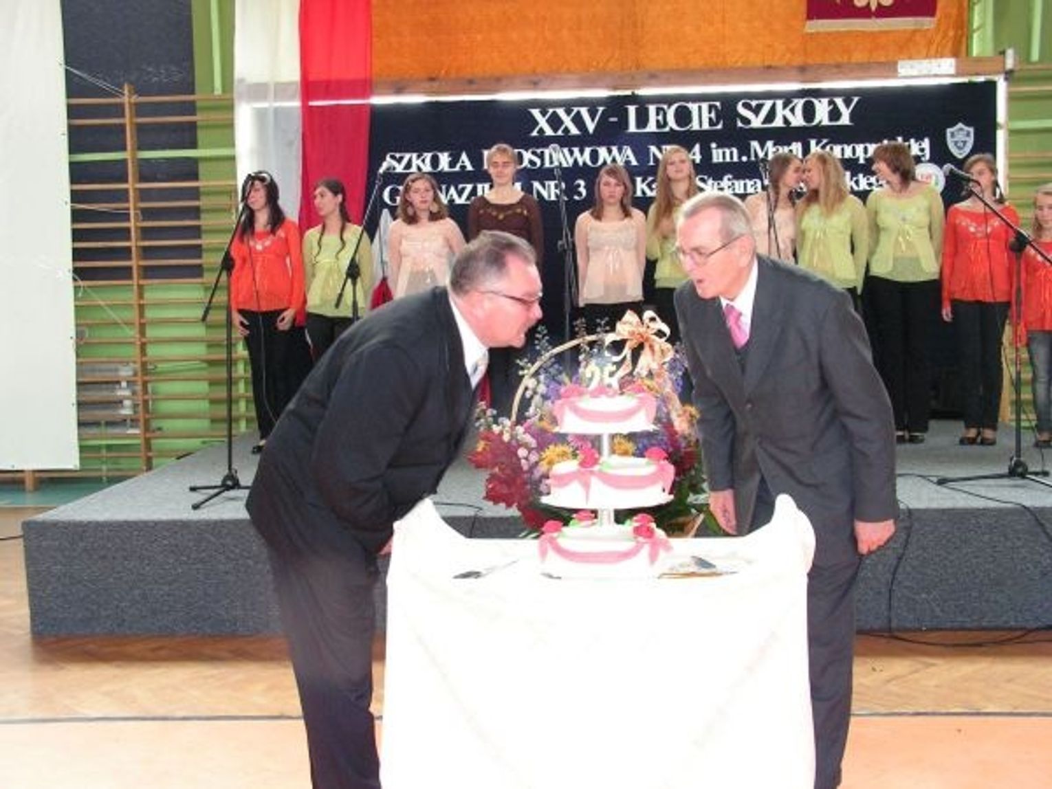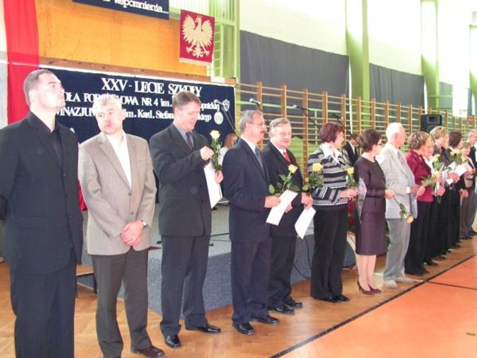 „Skały wietrzeją, człowiek się zmienia, lecz pozostają szkolne wspomnienia” – takie motto przyświecało 25-leciu szkoły, pięknemu jubileuszowi, który mogli świętować zarówno nauczyciele, teraźniejsi i byli uczniowie SP nr 4 oraz Gimnazjum nr 3. Wraz z nimi świętowali liczni zaproszeni goście, którzy... przynieśli ze sobą prezenty.