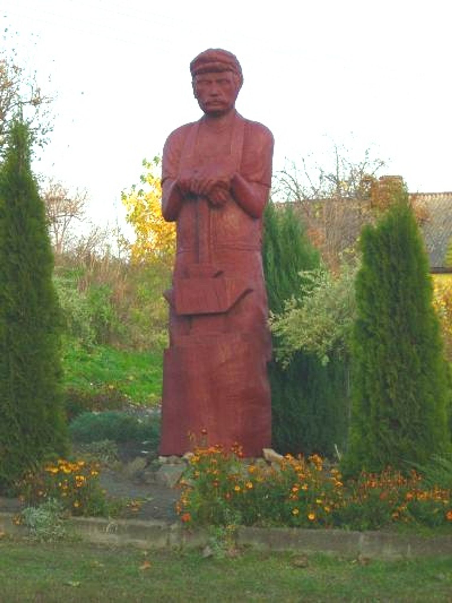 KOCIEWIE. We wsi Rożental odsłonięto rzeźbę kowala autorstwa Andrzeja Wolskiego. Trzymetrowa figura, nad którą prace trwały trzy lata, wykonana została z drewna klonowego i stanęła w miejscu byłej kuźni.