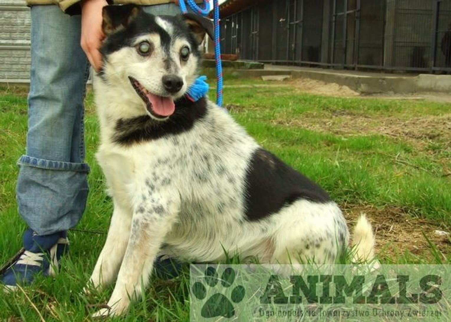 ● Niewidomy (Ślepy) – 9 lat, średni. Pomimo swojego kalectwa bardzo dobrze daje sobie radę, bez trudu znajduje pełną miskę i nie pozwala nikomu do niej zaglądać. Niestety, nie lubi chłodzić na smyczy, ale dobrze by się czuł w ogródku.