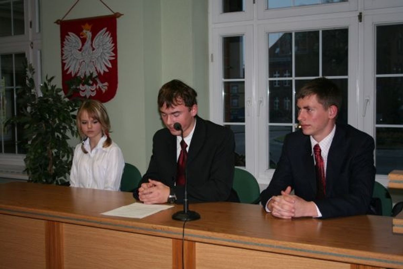 Legitymacje młodym radnym wręczył Włodzimierz Mroczkowski, przewodniczący „dorosłej” Rady Miejskiej oraz prezydent Zenon Odya.