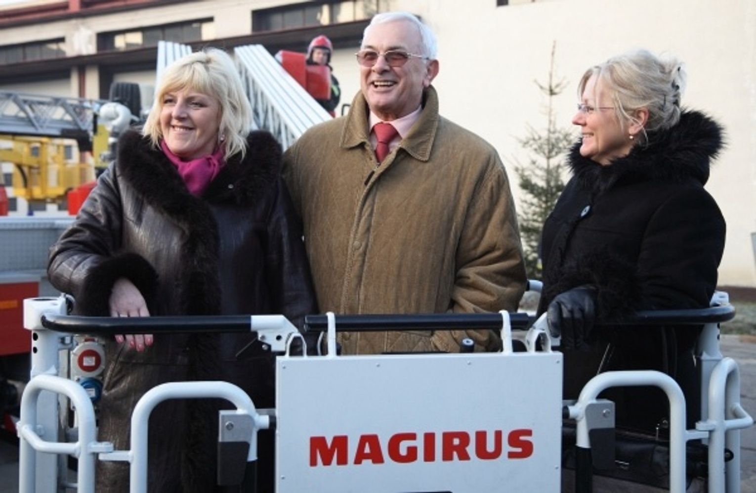 Drabina została sprowadzona z miejscowości Ulm w Niemczech. W fabryce Magirusa - jednej z największych firm zajmujących się produkcją m.in. specjalistycznych pojazdów strażackich - gościł Mirosław Kaffka.
