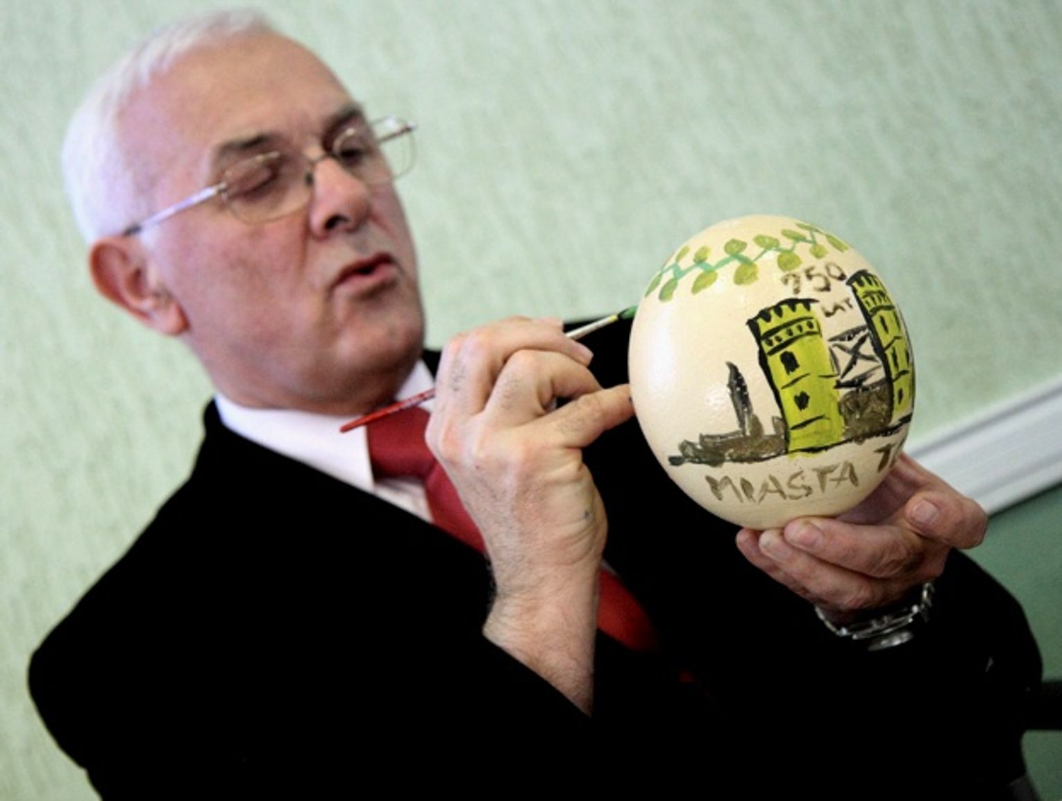 W przerwie wczorajszej sesji Rady Miejskiej, w samo południe, każdy z radnych (jak i prezydent, zastępcy, skarbnik i sekretarz miasta) otrzymał po strusim jaju. Zadanie było proste: własnoręczne wykonanie pisanki, która nawiązywałaby do jubileuszu 750-lecia miasta Tczewa. Gotowe pisanki wystawione zostały na licytację podczas przygotowanego przez Warsztaty Terapii Zajęciowej kiermaszu wielkanocnego „Największe jaja w Tczewie”.