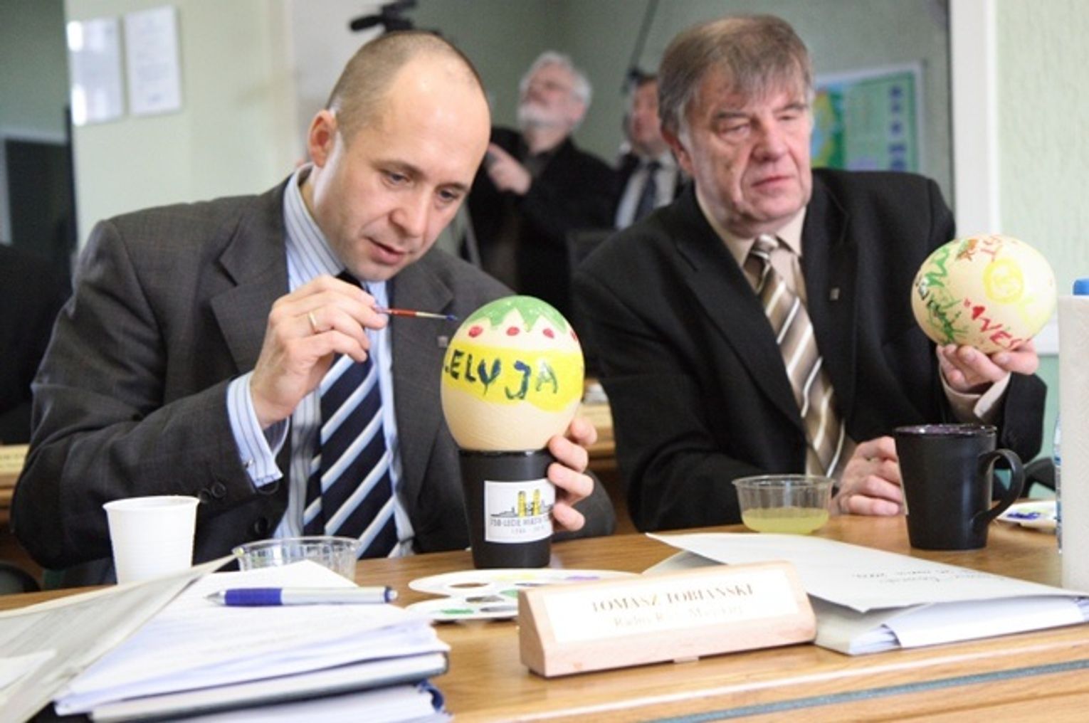 Jak co roku na tego typu zabawie musiał być hit. Tym razem jednak nie była to licytacja ogromnego ceramicznego jaja – pisanki. Dlaczego? Bo w tym roku miejscy radni zadbali o całą paletę „strusich pisanek”, które podczas sesji Rady Miasta z trudem pomalowali. Wielu samorządowców podpisało się imieniem i nazwiskiem, choć zdarzały się też inicjały. Szkoda tylko, że więcej radnych nie pofatygowało się na licytację. Widać było tylko samorządowców PiS ze starostą Witoldem Sosnowskim.