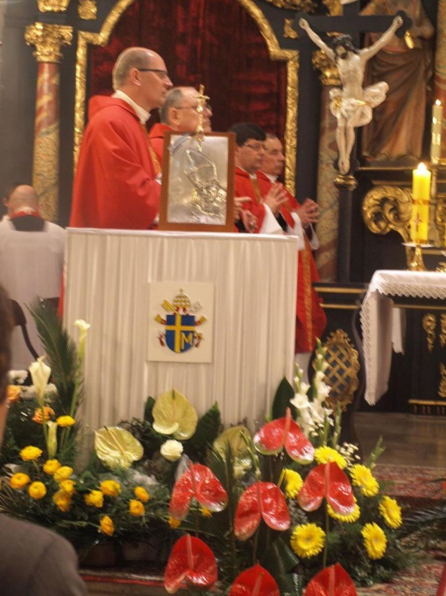 Relikwiarz został ustawiony przy ołtarzu. W uroczystej mszy uczestniczyli ks. biskup Jan Bernard Szlaga, dyrektor Radia Głos ks. prałat Ireneusz Smagliński, księża dekanatu starogardzkiego, kociewscy posłowie, samorządowcy i setki wiernych ze Starogardu Gd. Podczas kazania ks. biskup mówił o ogromnych wyzwaniach dzisiejszego Kościoła, ale także historycznym dniu dla Starogardu Gd. i Kociewia.