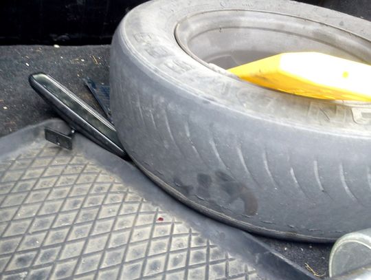 STAROGARD GD. Przednie opony tego auta były tak zużyte, że nie dość, że nie miały bieżnika to już wystawały z nich białe sznurki.